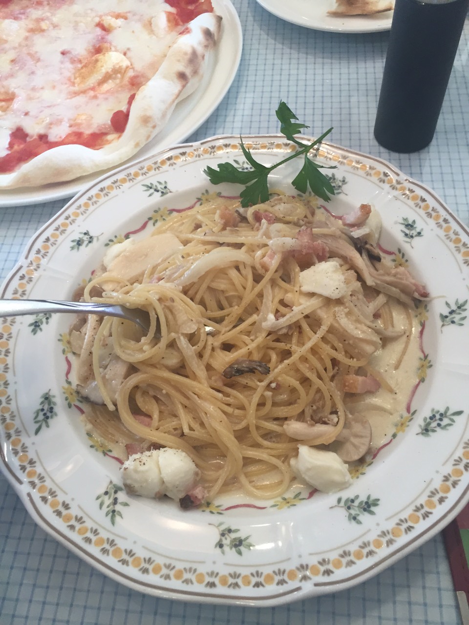 途中、男三人でパスタという暴挙に出つつも