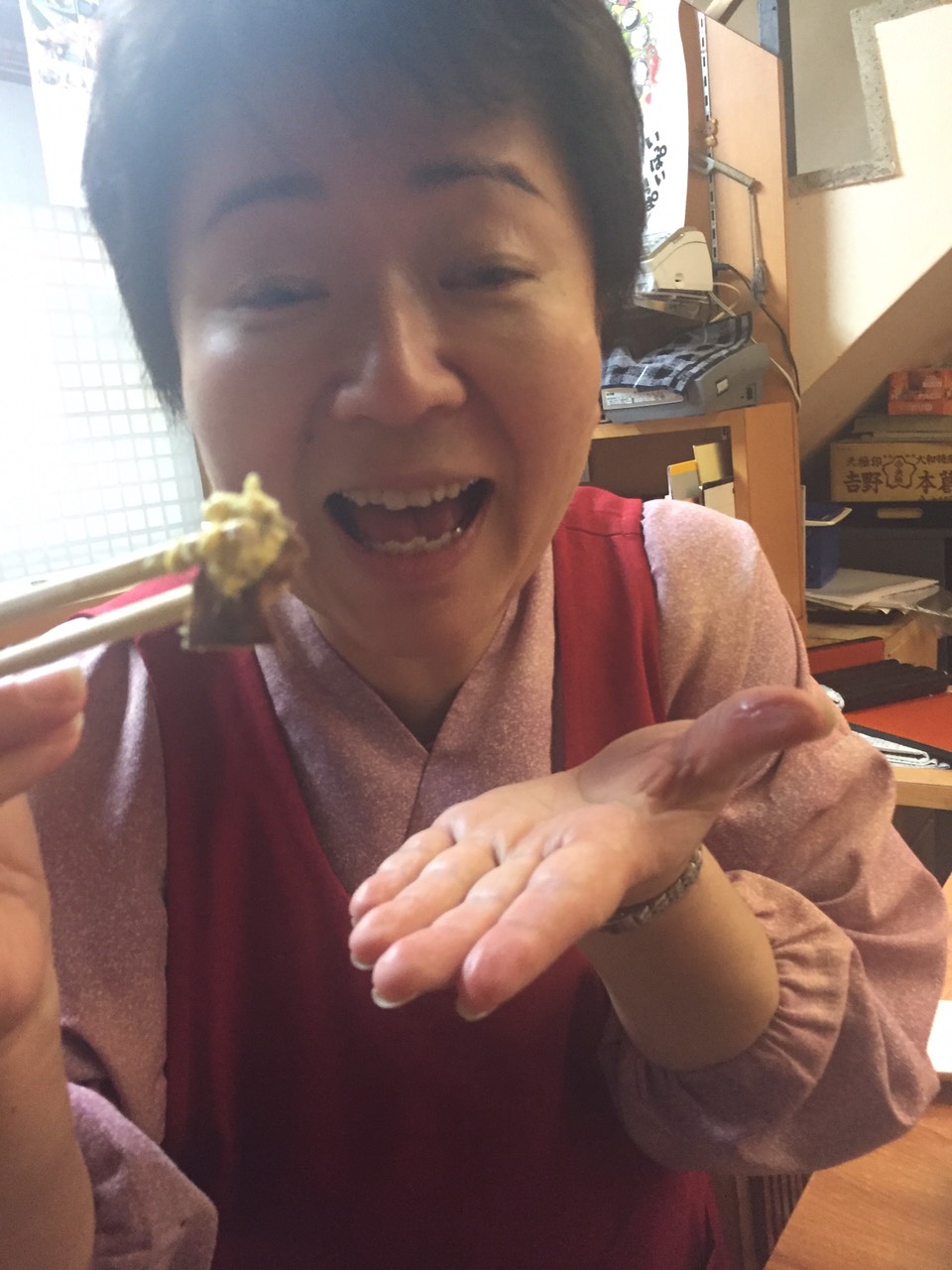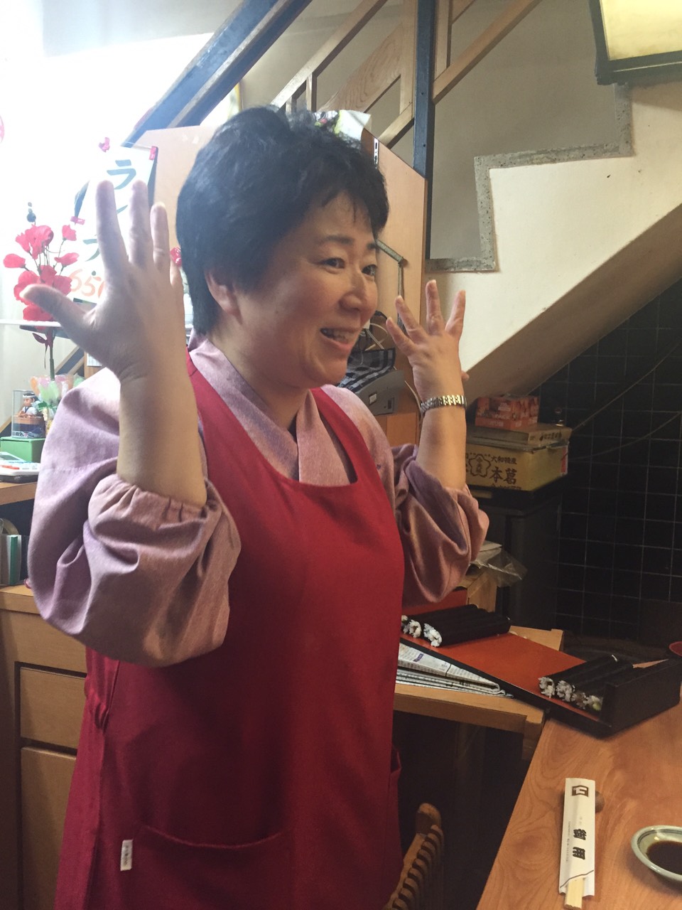 女将さんがが身振り手振りでめっちゃはなしてきます