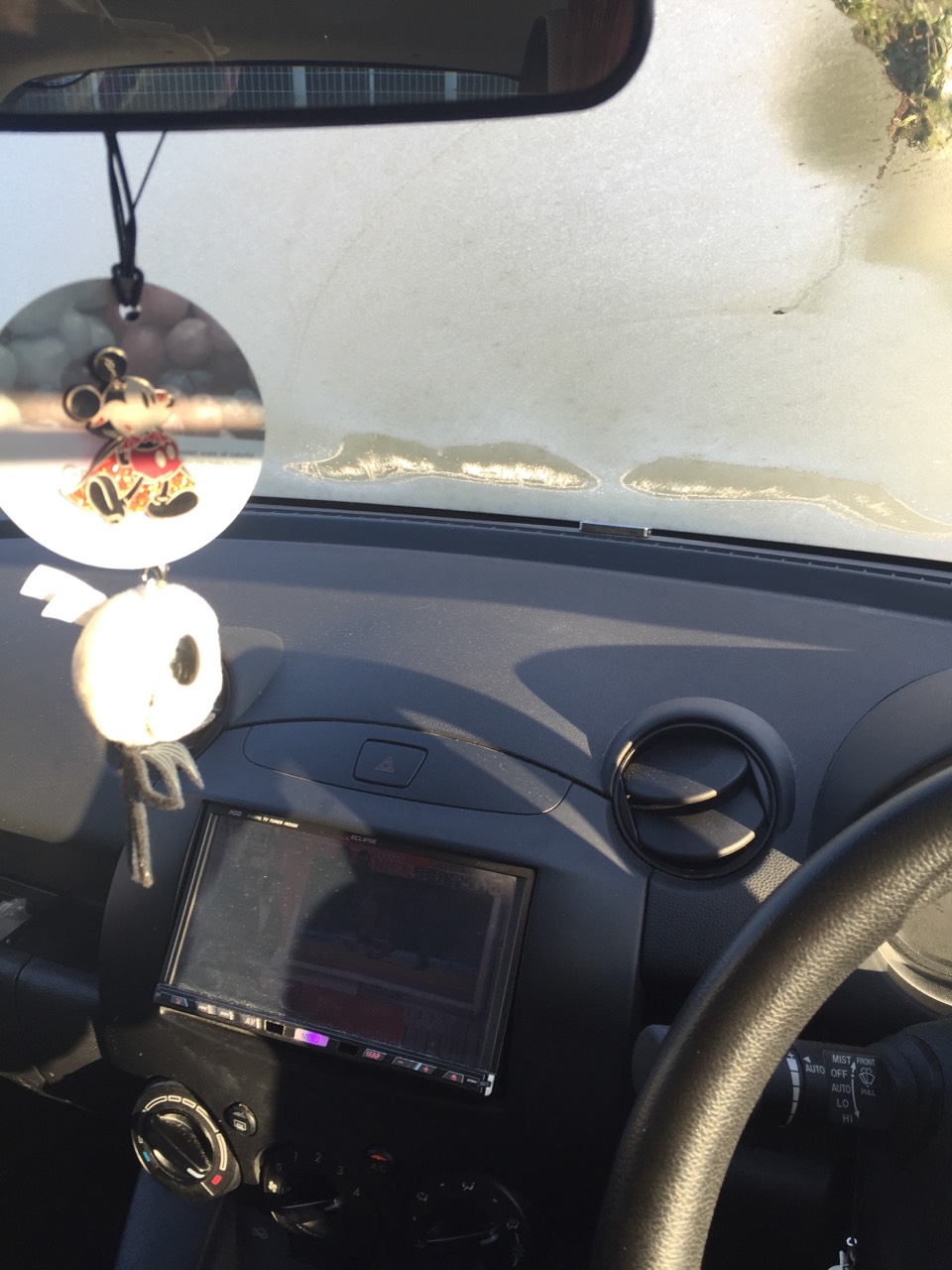 着替えて車に乗る