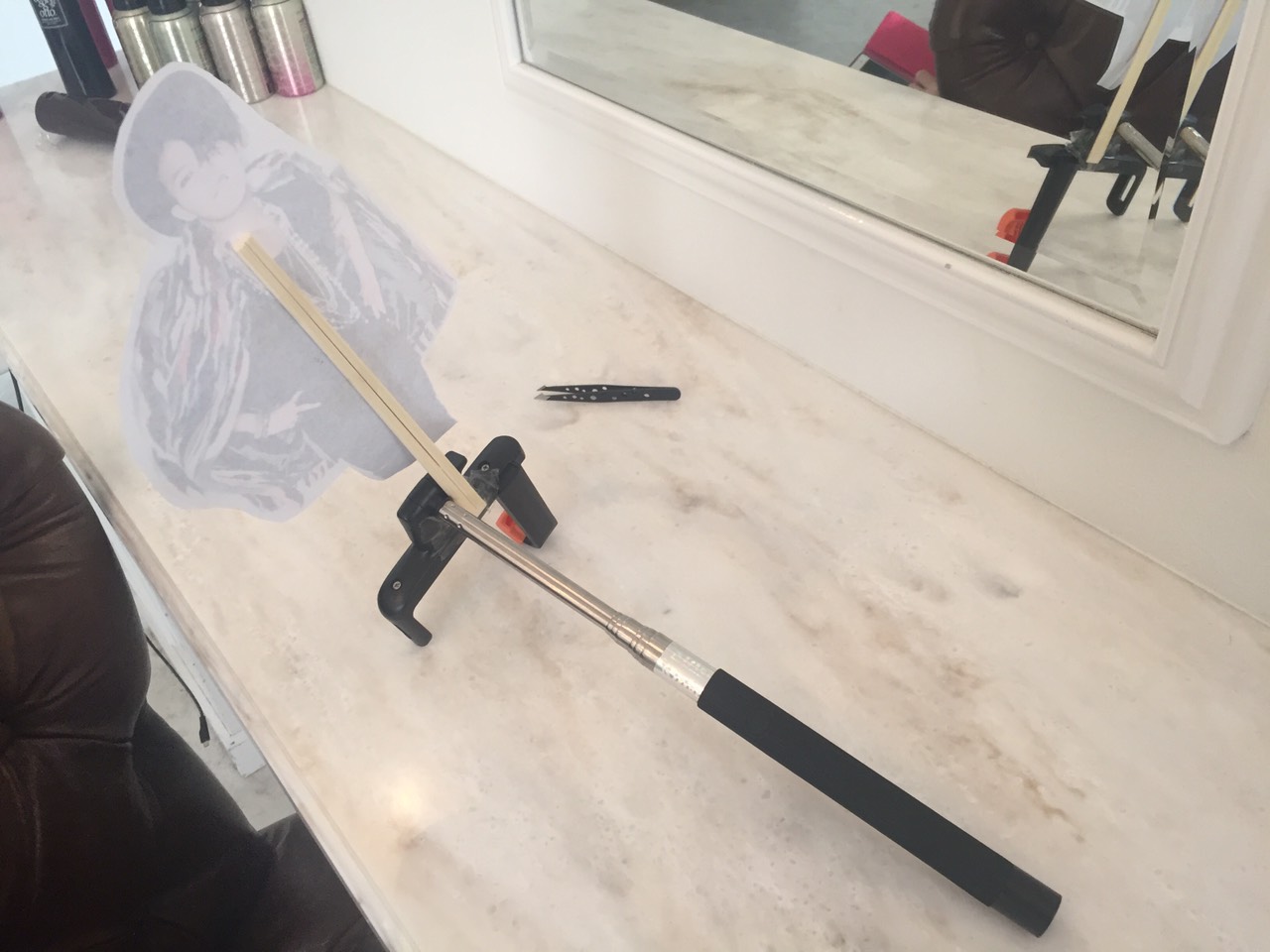 これを今や誰しもタンスの奥底に眠っているであろう自撮り棒にくっつけます