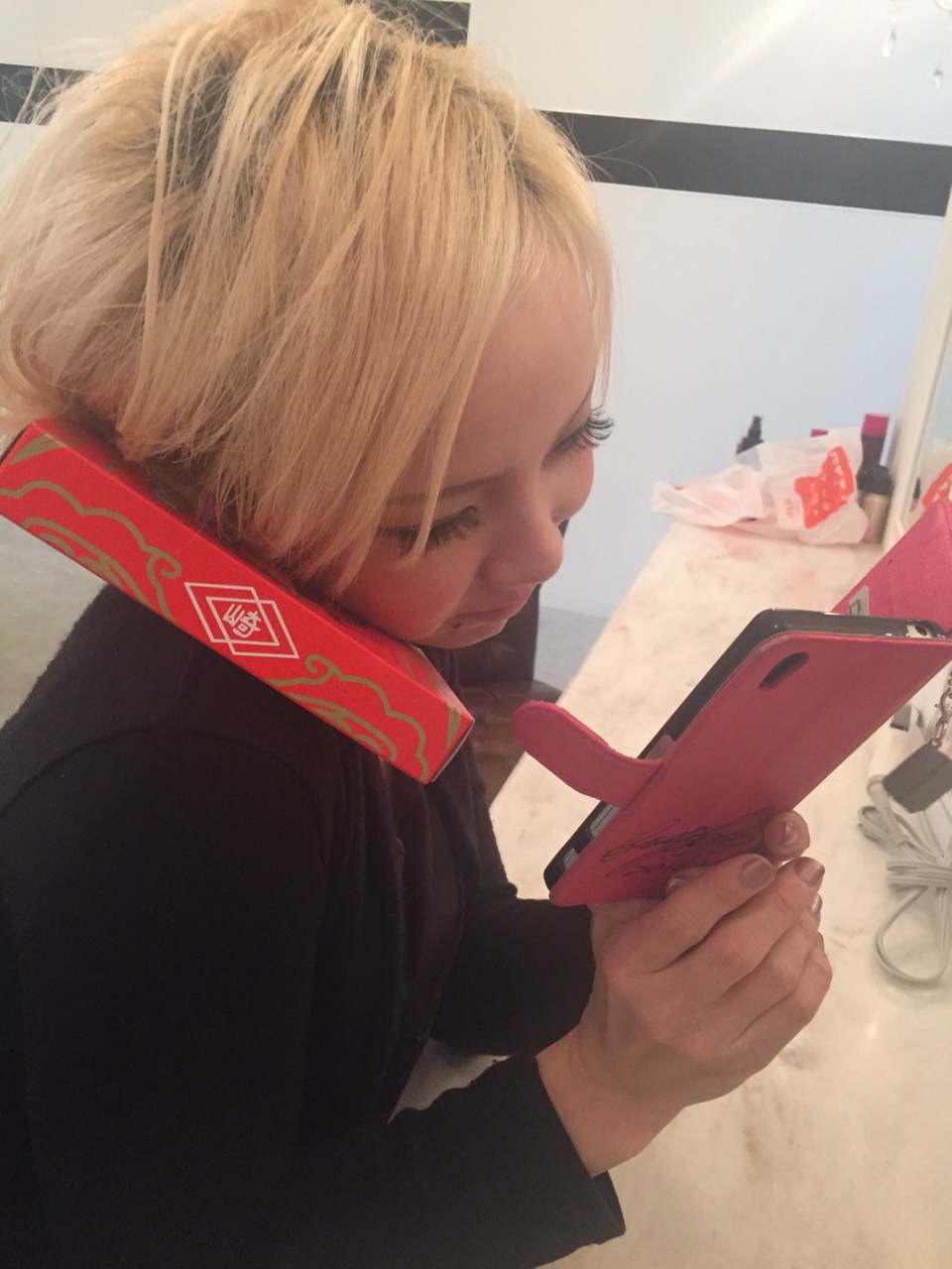 菱田さんのスマホで撮影をするとなぜだかピンクになります
