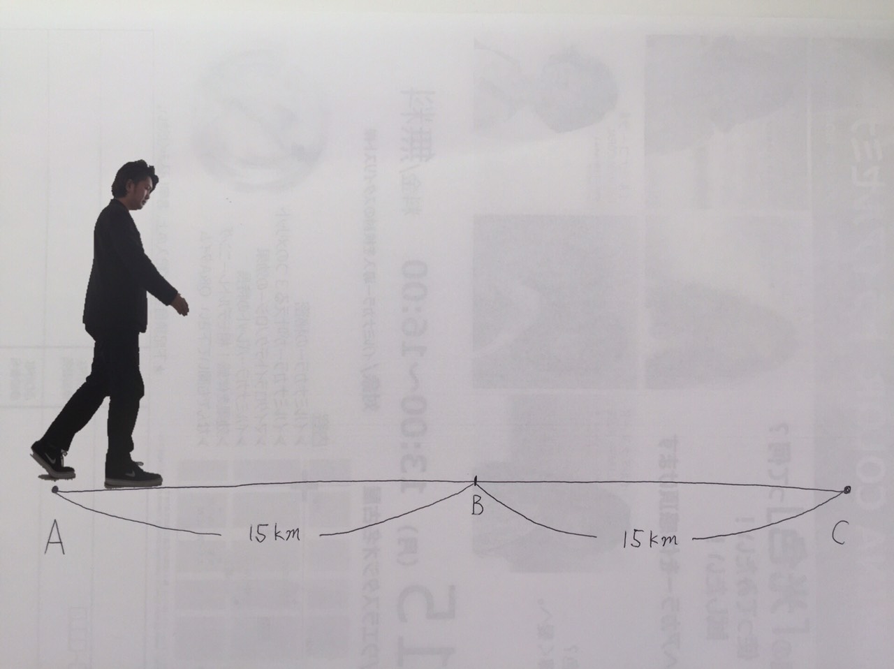 まぁここは歩きが時速2キロなのか走りが時速4キロなのかっていうのは考えないでください!!!!