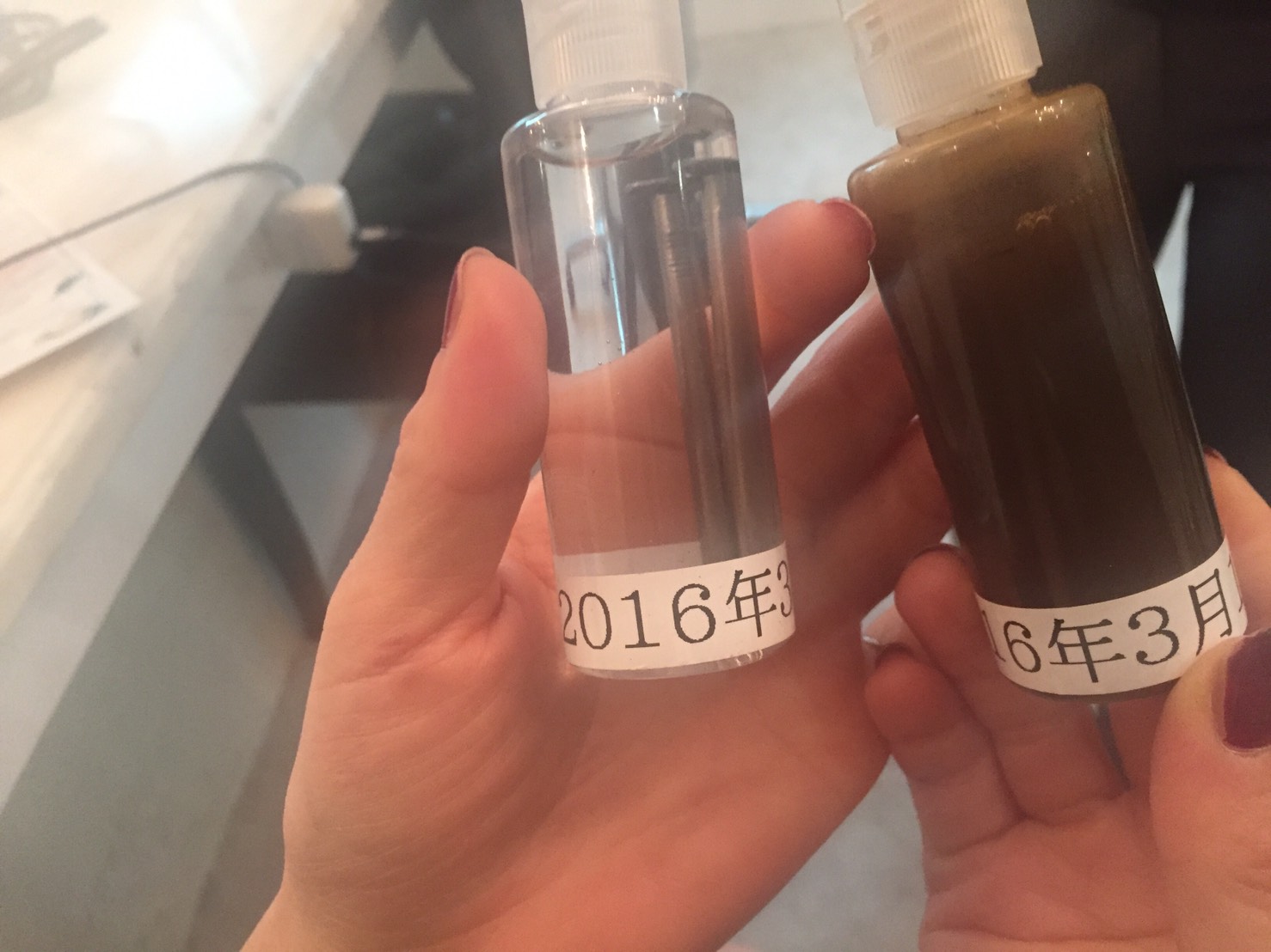 シャンプーに色がつきます