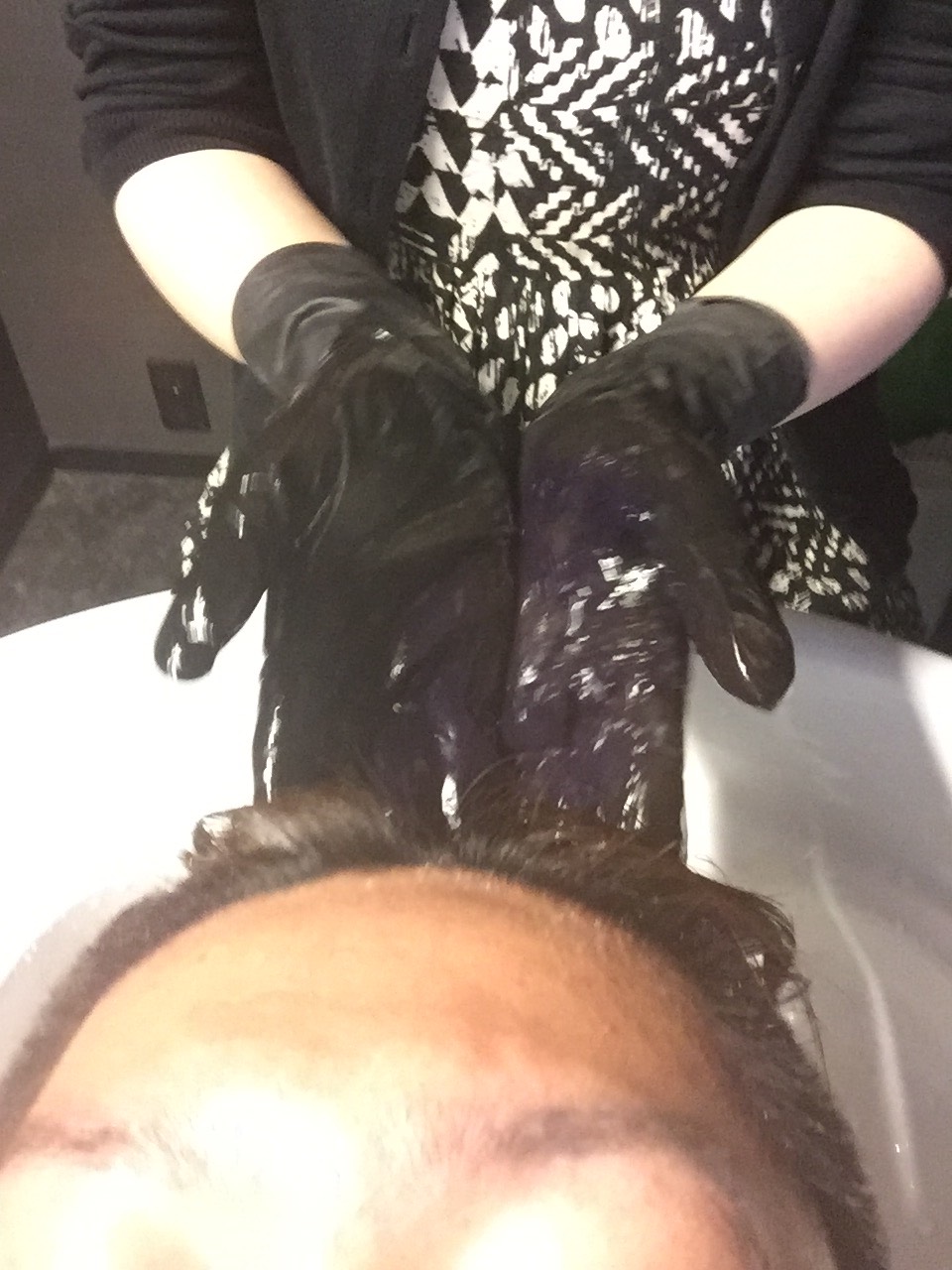 僕はニュアンスカラーをやるのでシャンプー台でやります