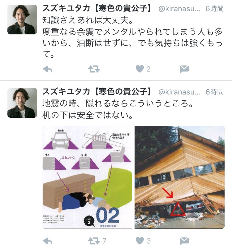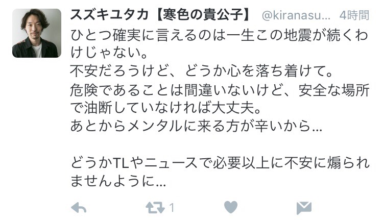 本当に余震が多発して不安かと思いますが気持ちは強く冷静に行動なさってください。