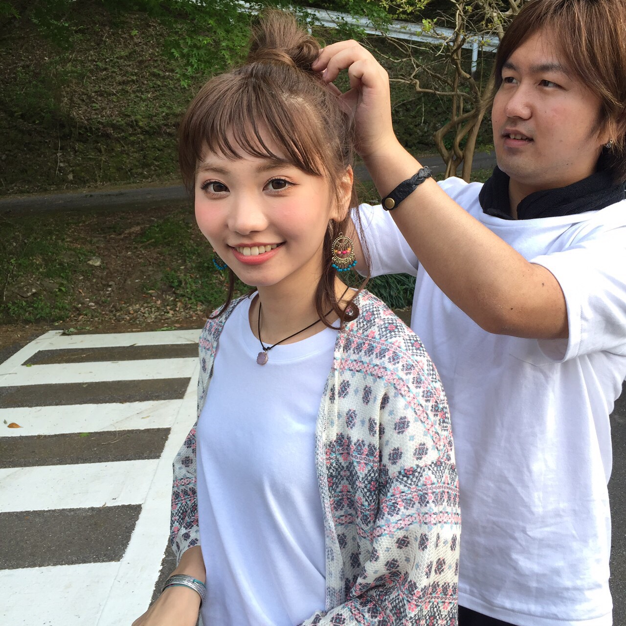 かとゆきちゃんの手元に天然水らしきものが写ってしまっていますのでこれだけ撮影美容師さんの必殺技であるレタッチをしましょう
