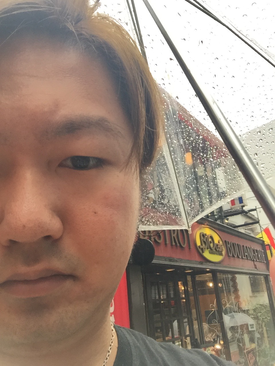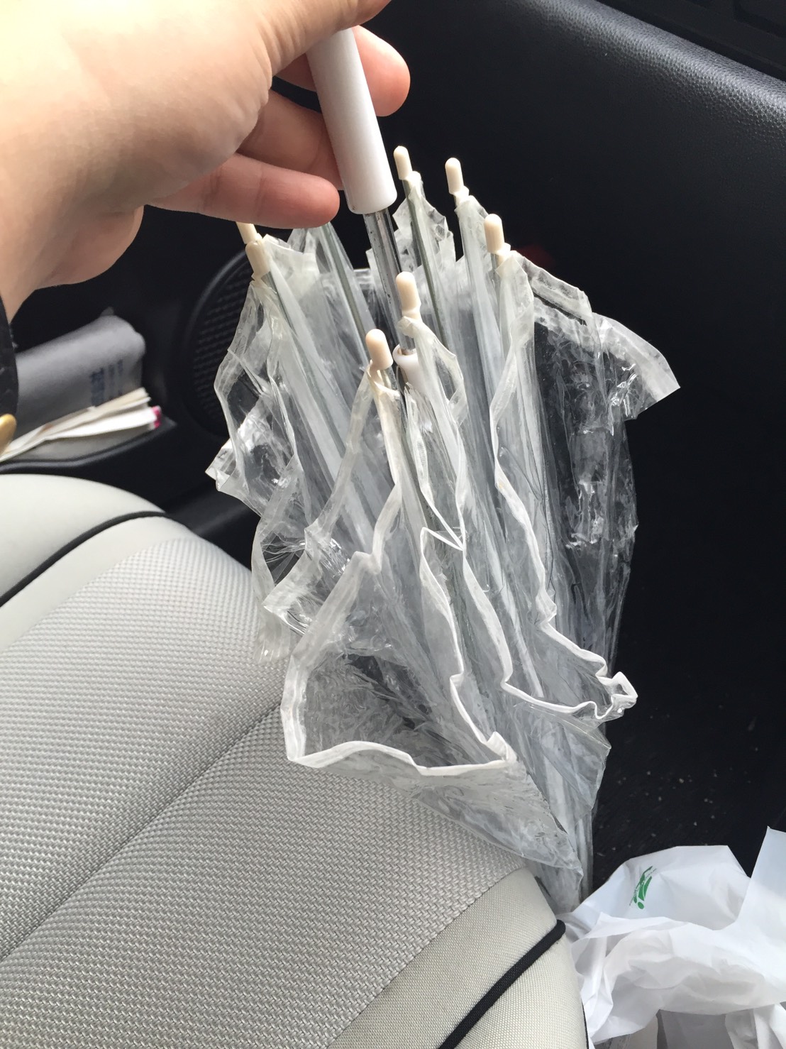 まず雨だったので車の中の傘を探した