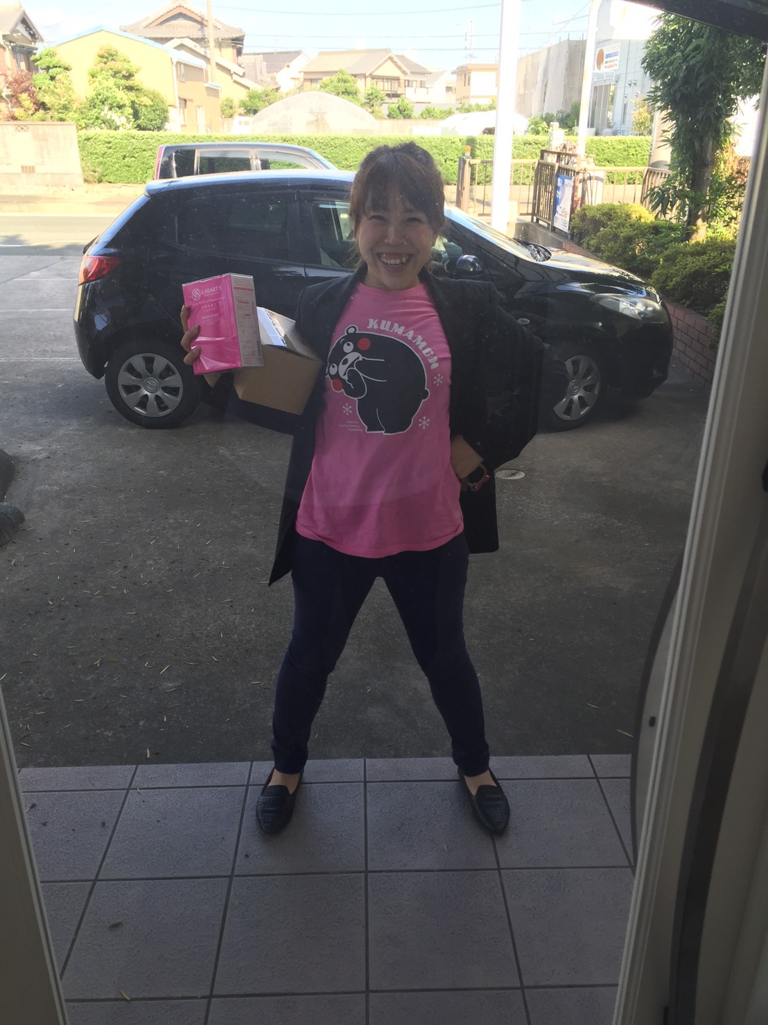 なんか商品をもって・・・