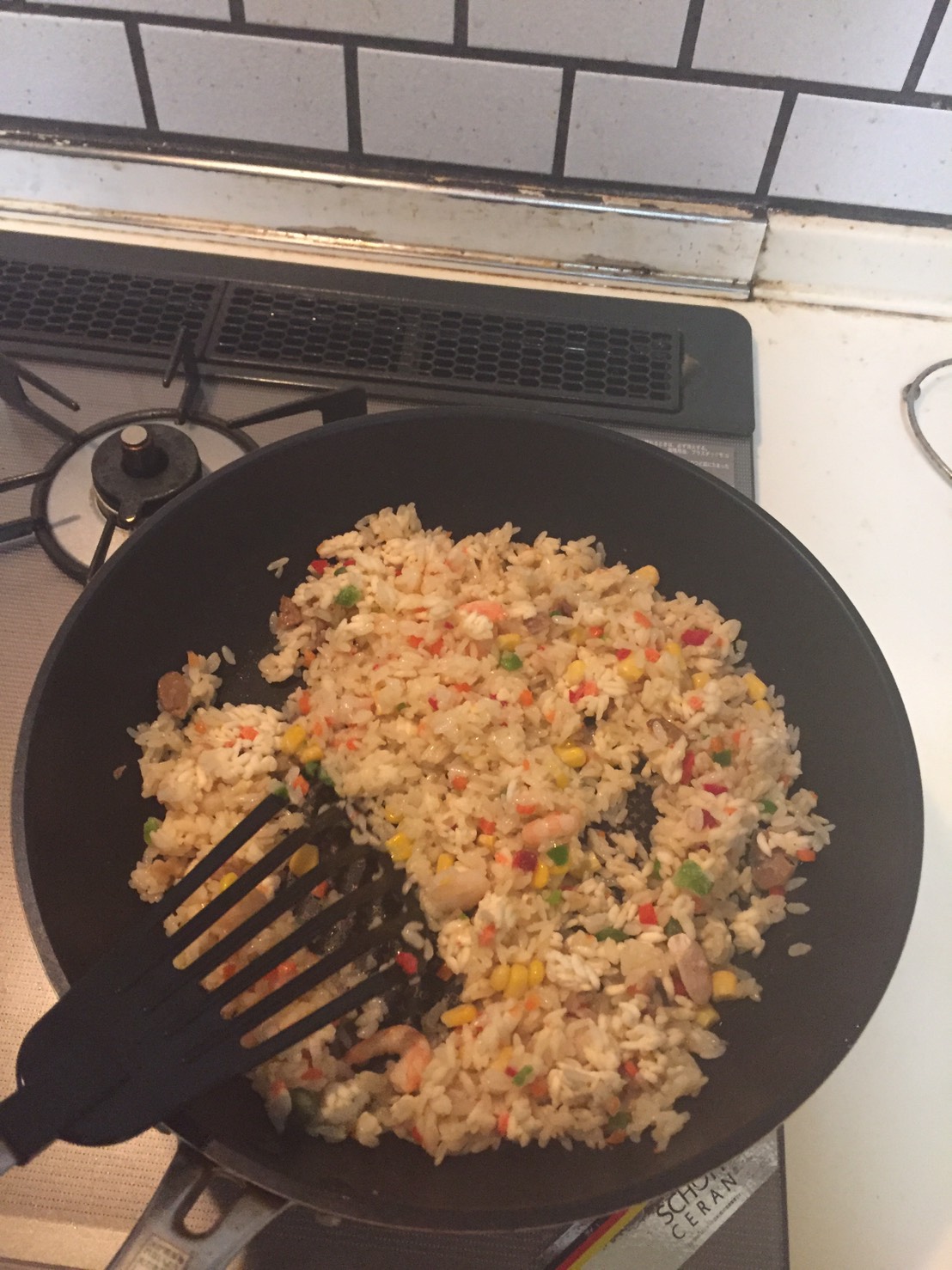 ピラフを炒めます