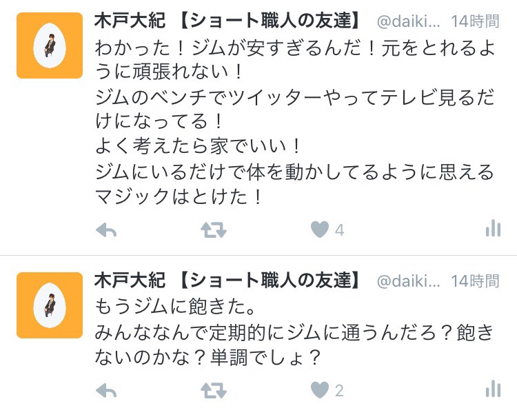 お前、ジムやめてんじゃねぇよ!!!!!!!!!!!!