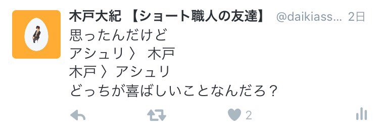 僕の立場からするともしかしたらアシュリと木戸のパワーバランスは同じがベストなのかもしれません