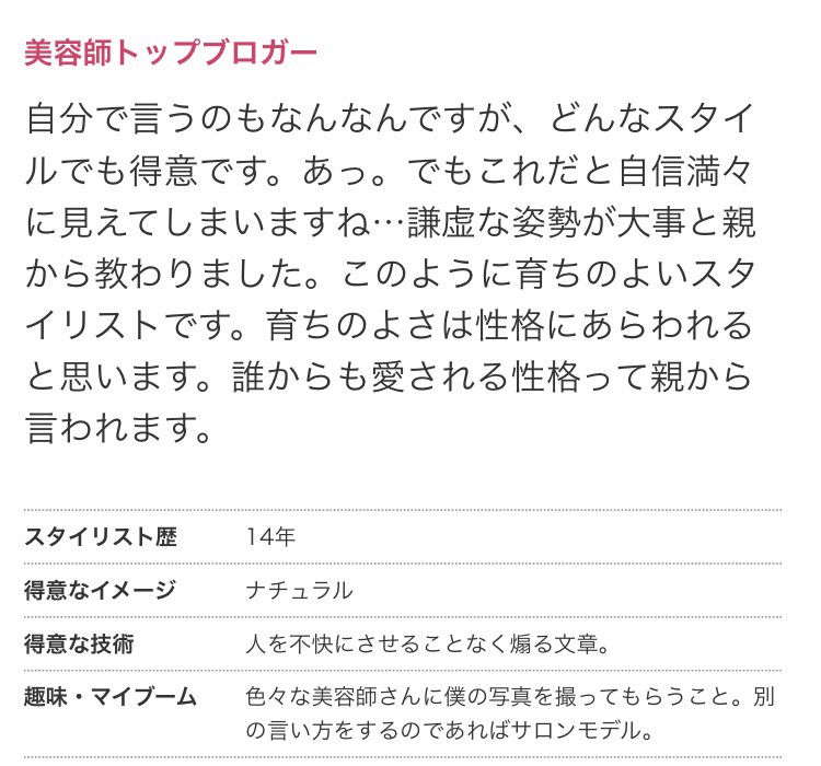 とりたて特徴のないようなオールマイティー美容師みたいな書き方をしちゃったよ