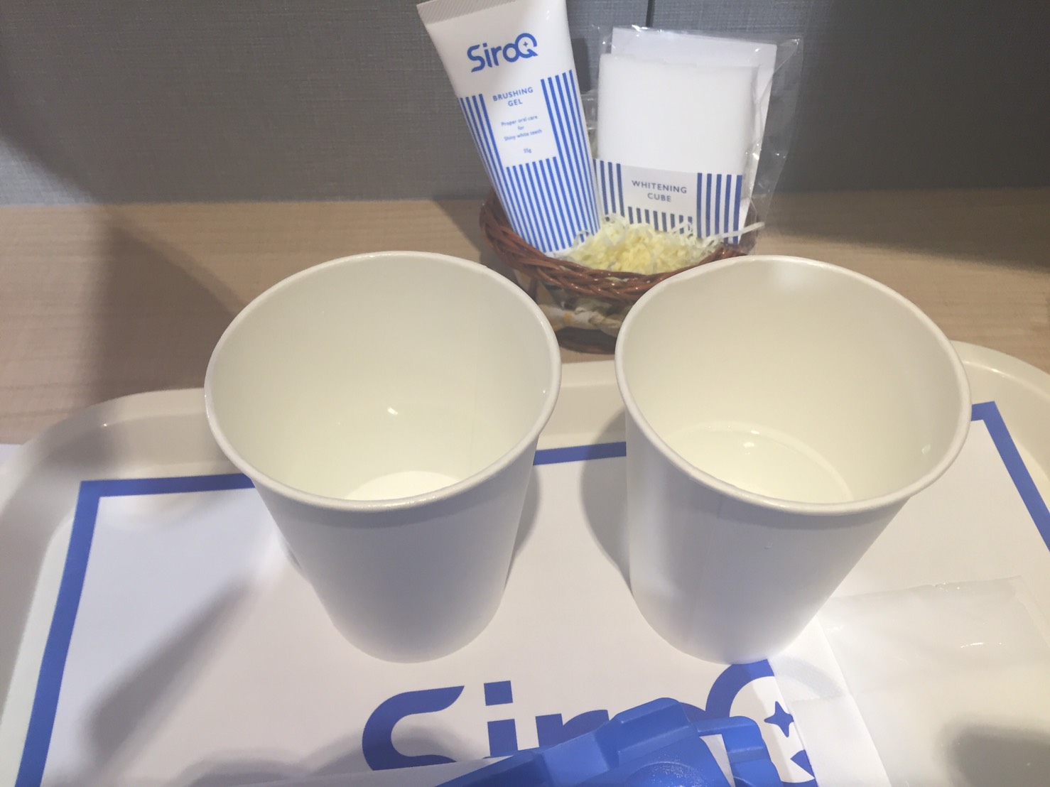水が入っているコップと吐き出す用のコップです