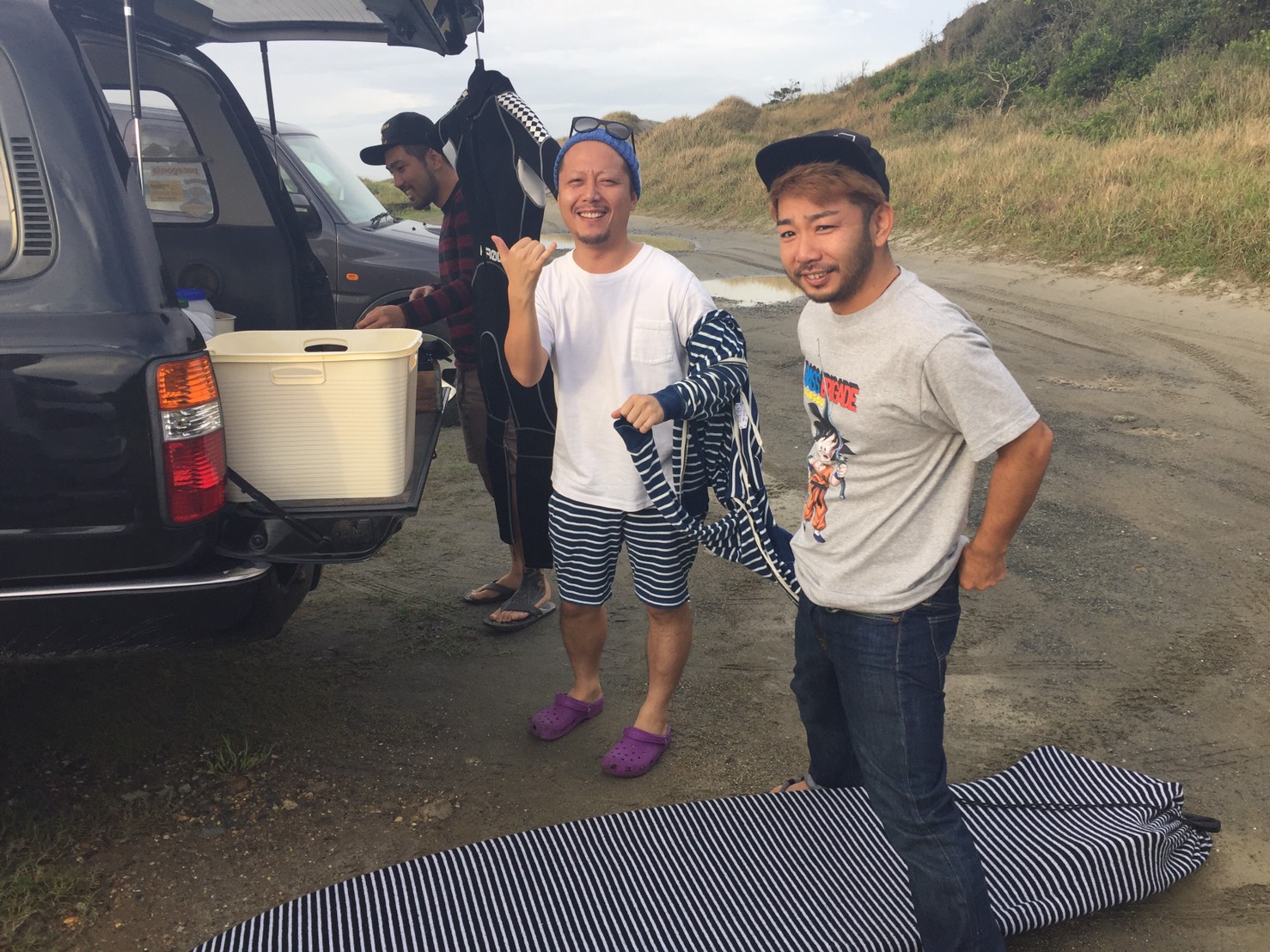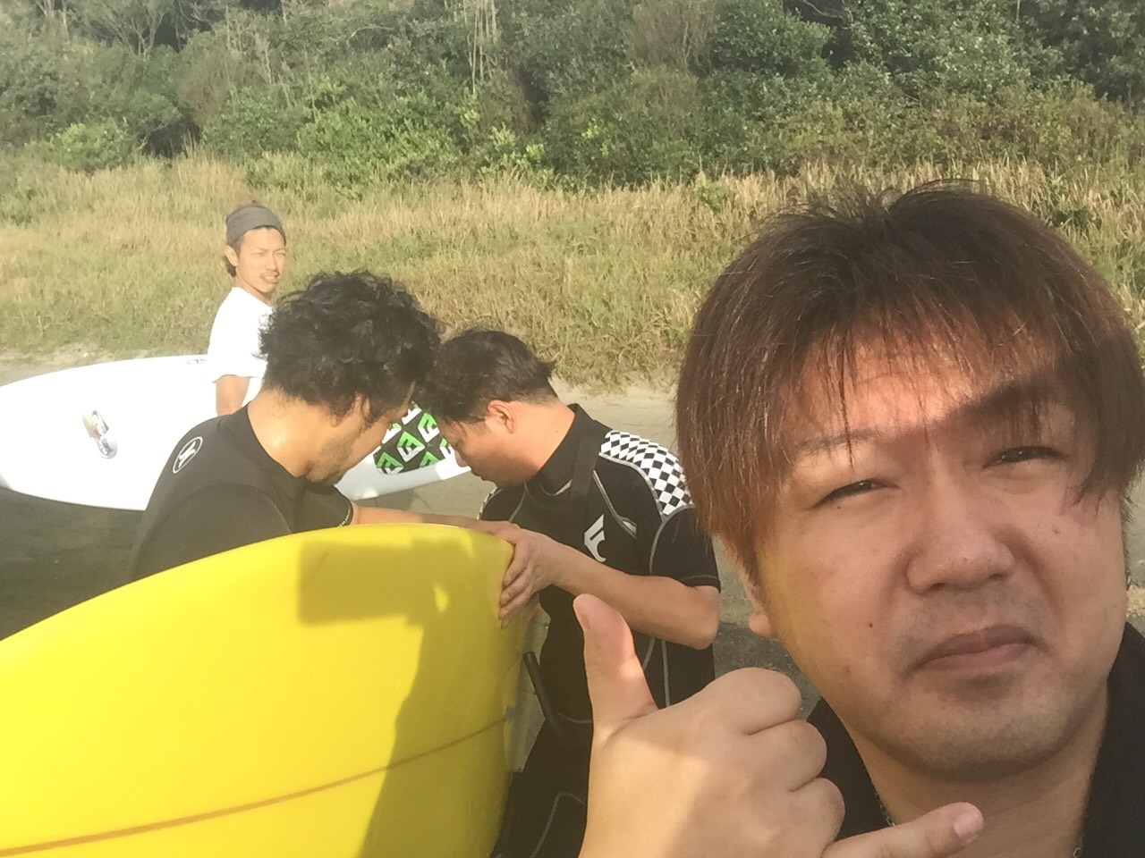 現地では3人のサーフィン仲間が待っています