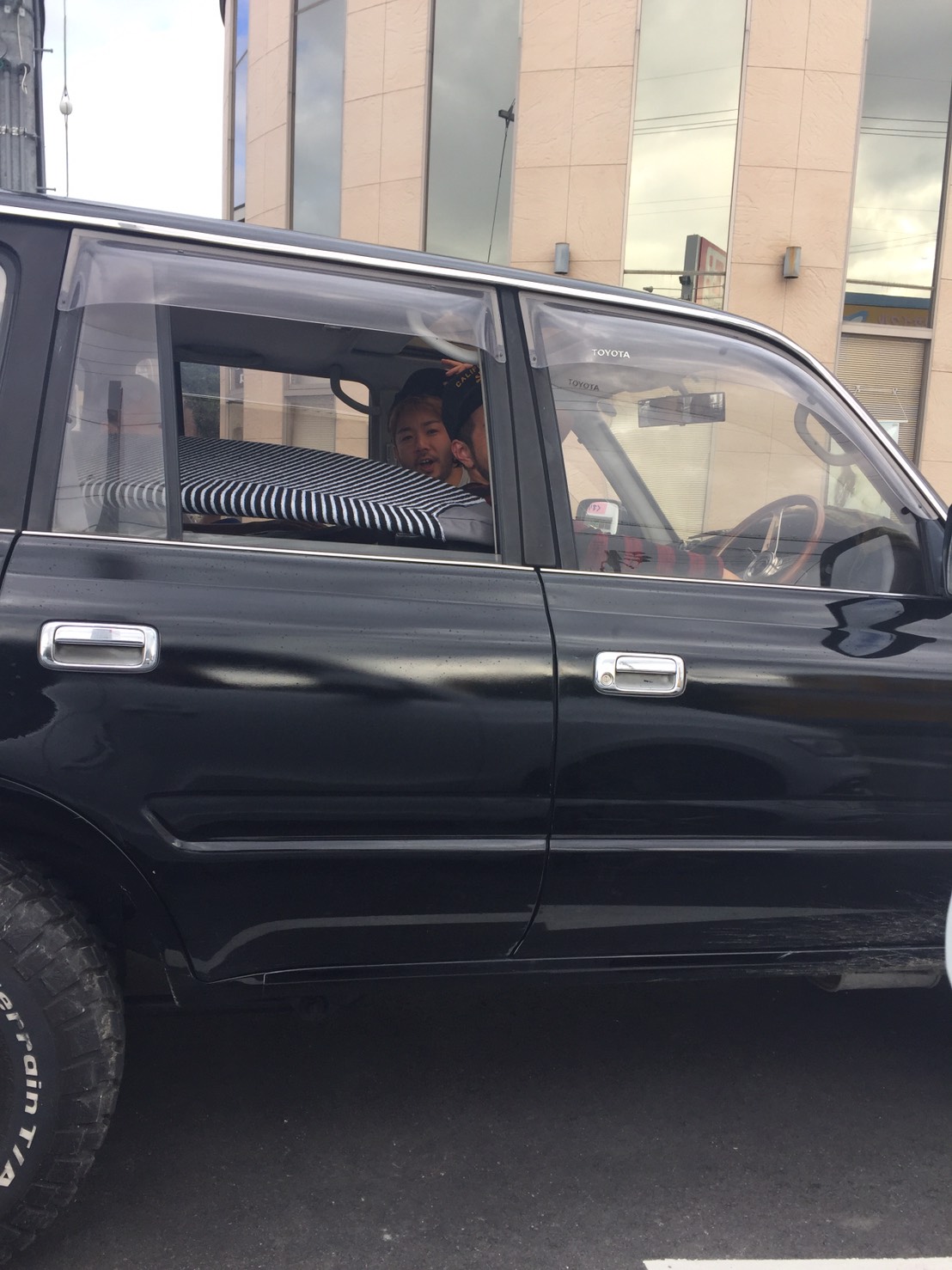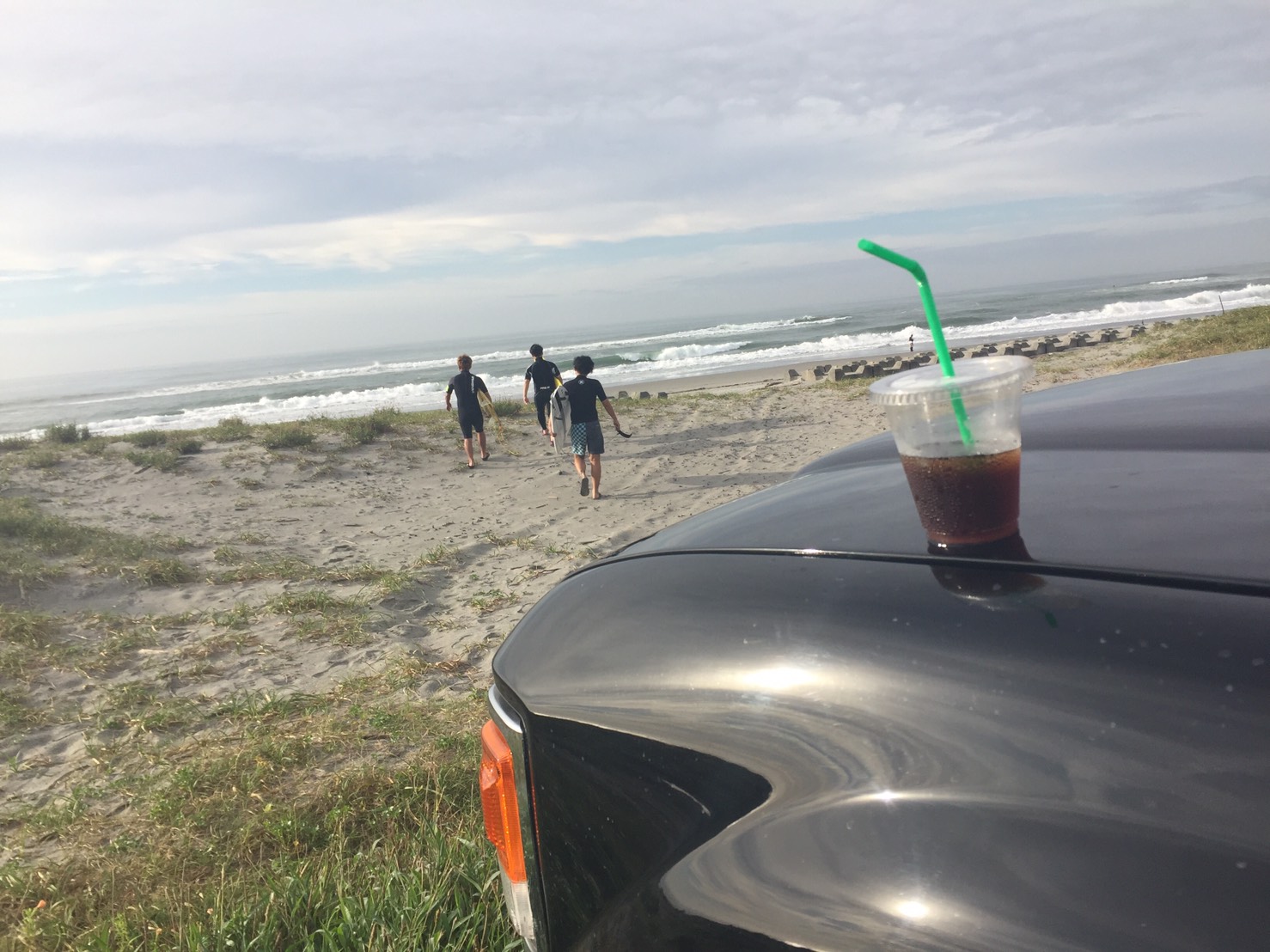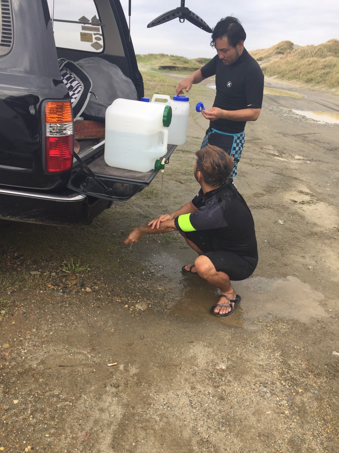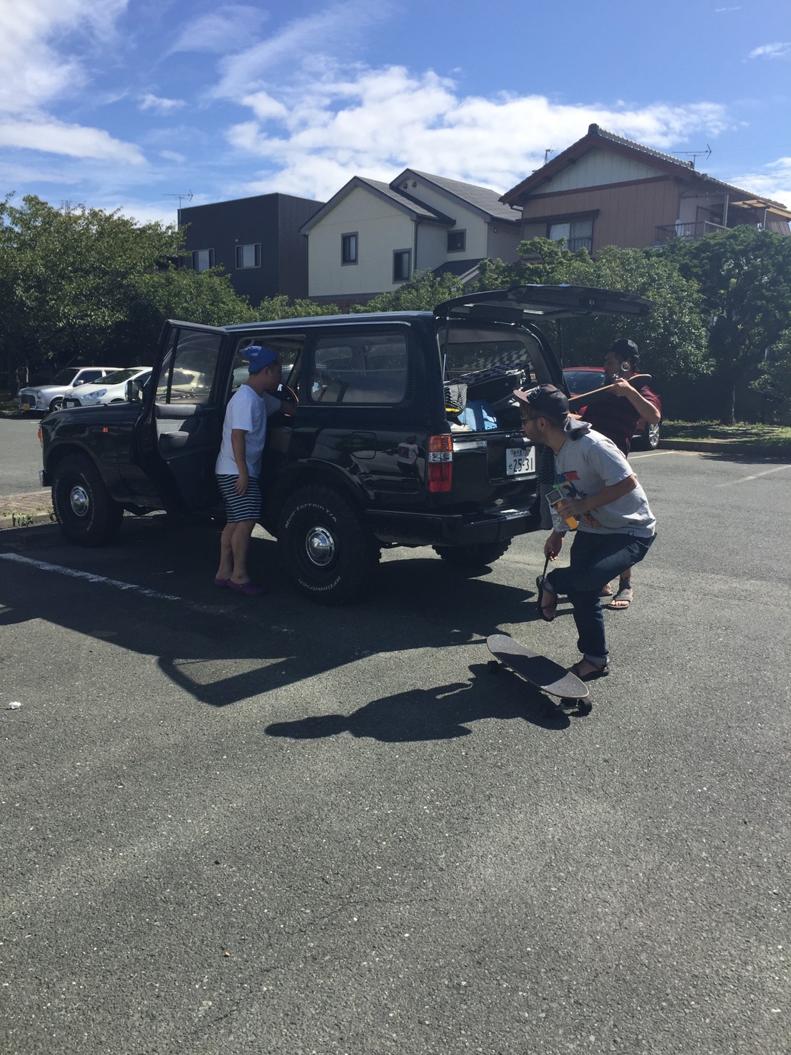 僕たちはとりあえずベタベタするし暑いから車に戻りましょう