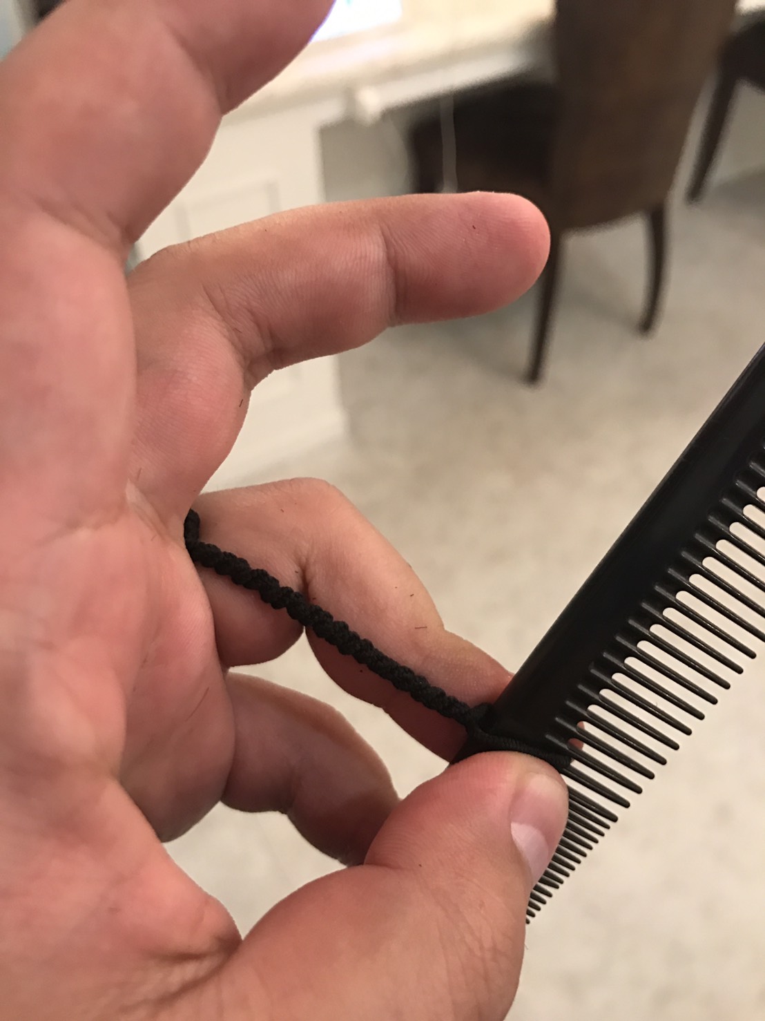 ゴムをコームに通します