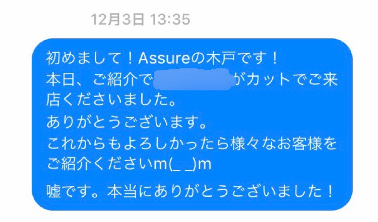 「予約していた美容室があったら予約を断ってでも12月はアシュリに来てください!!!!!!」