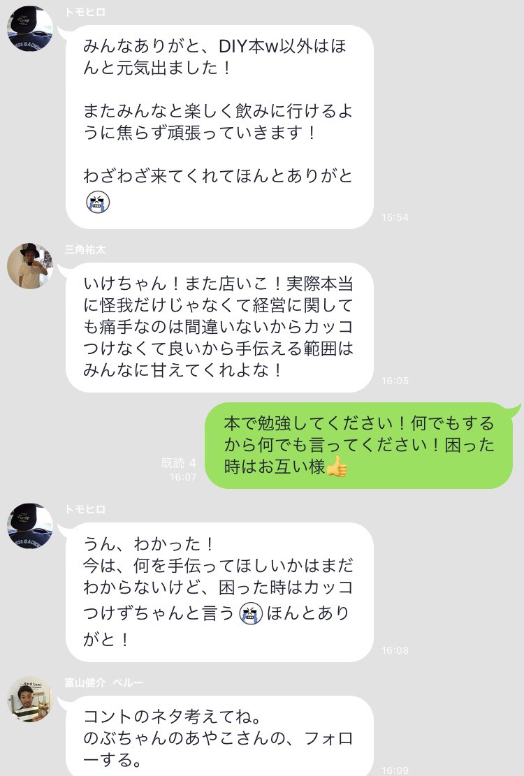そしてすぐに池田さんから気を使って連絡が来る