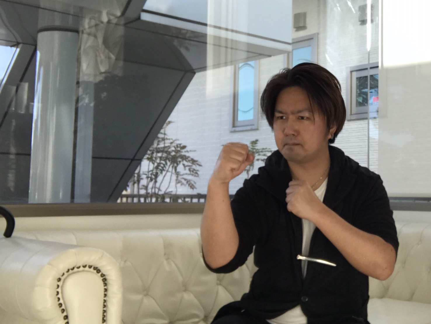 インタビューの内容によってはぶっとばしてやる!!みたいに見えます