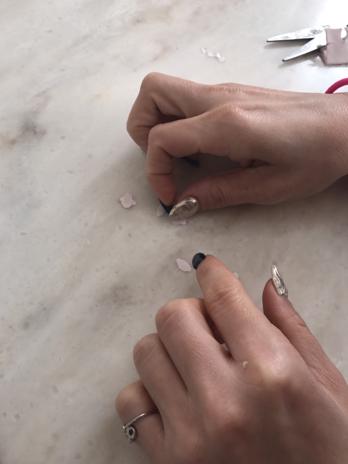 折り紙を切っている