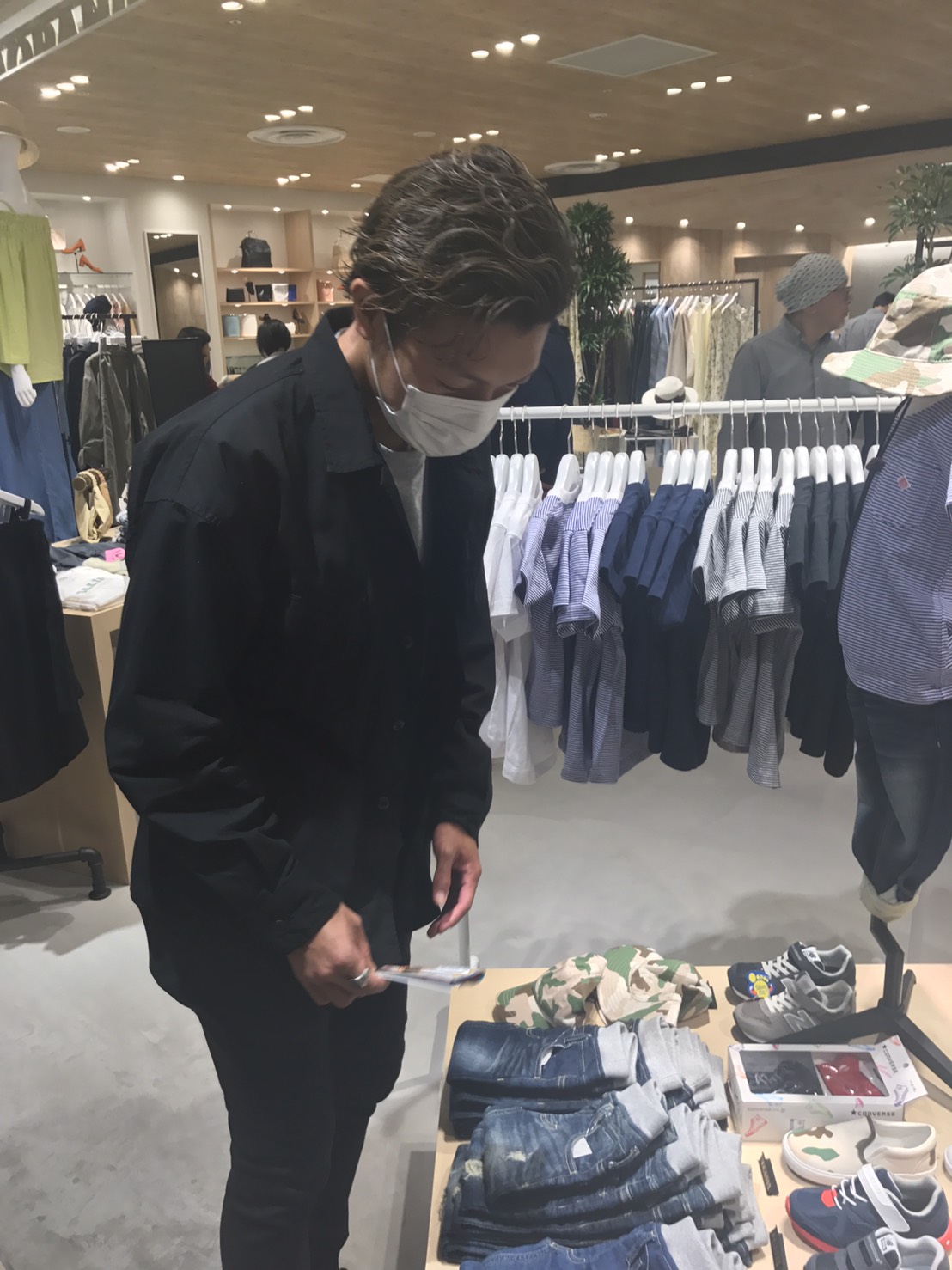 財布の中身の確認、マスク