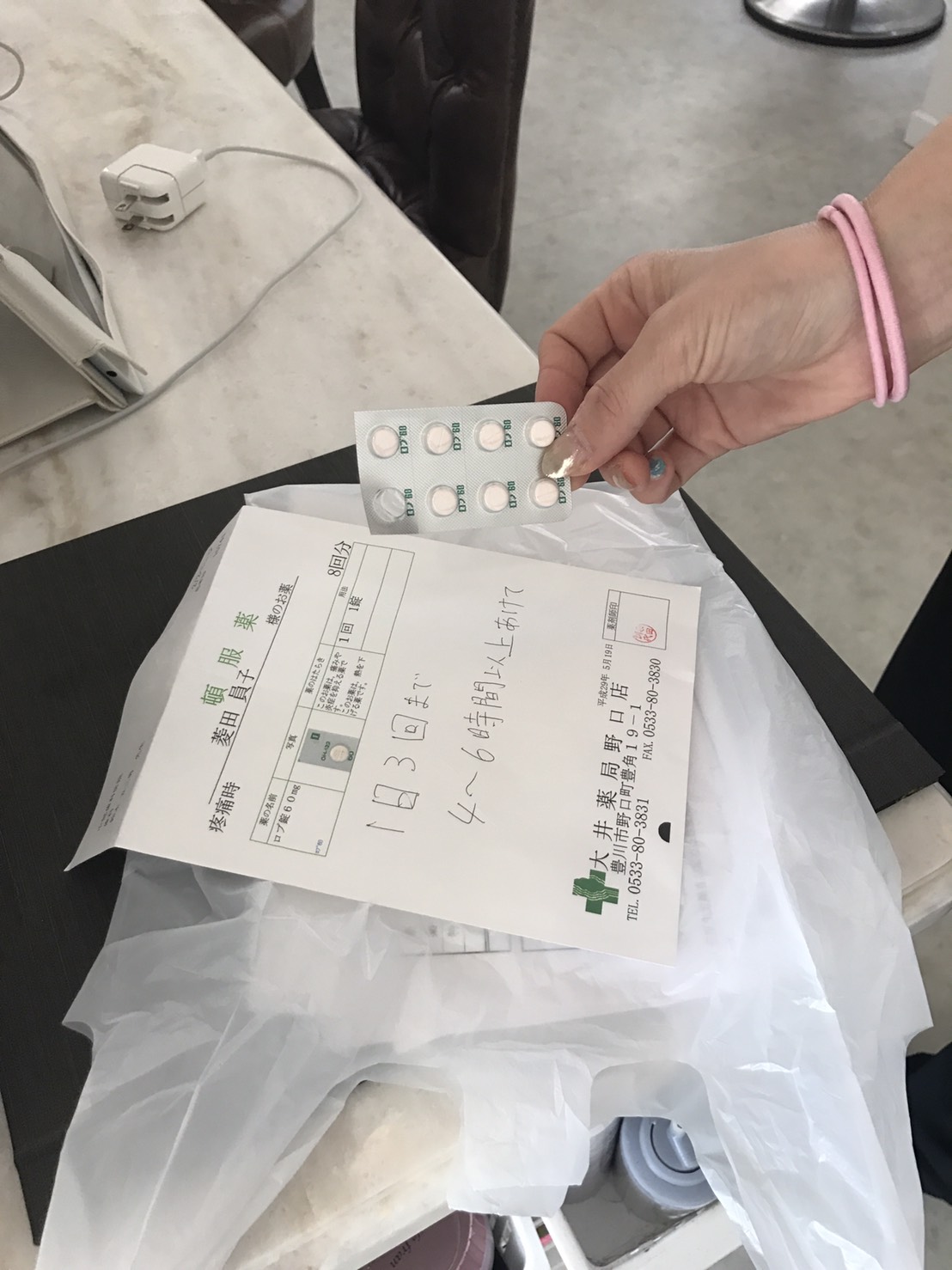 痛み止めはいつでも飲めるようになのかお客様も見えるセット面に置いてあります