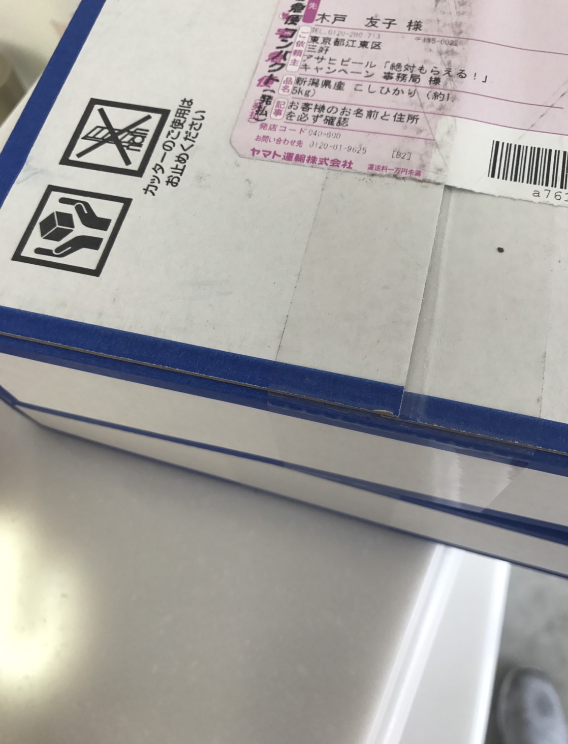 アサヒビール「絶対もらえる!」キャンペーン事務局からこしひかりが4.5キロ届いた