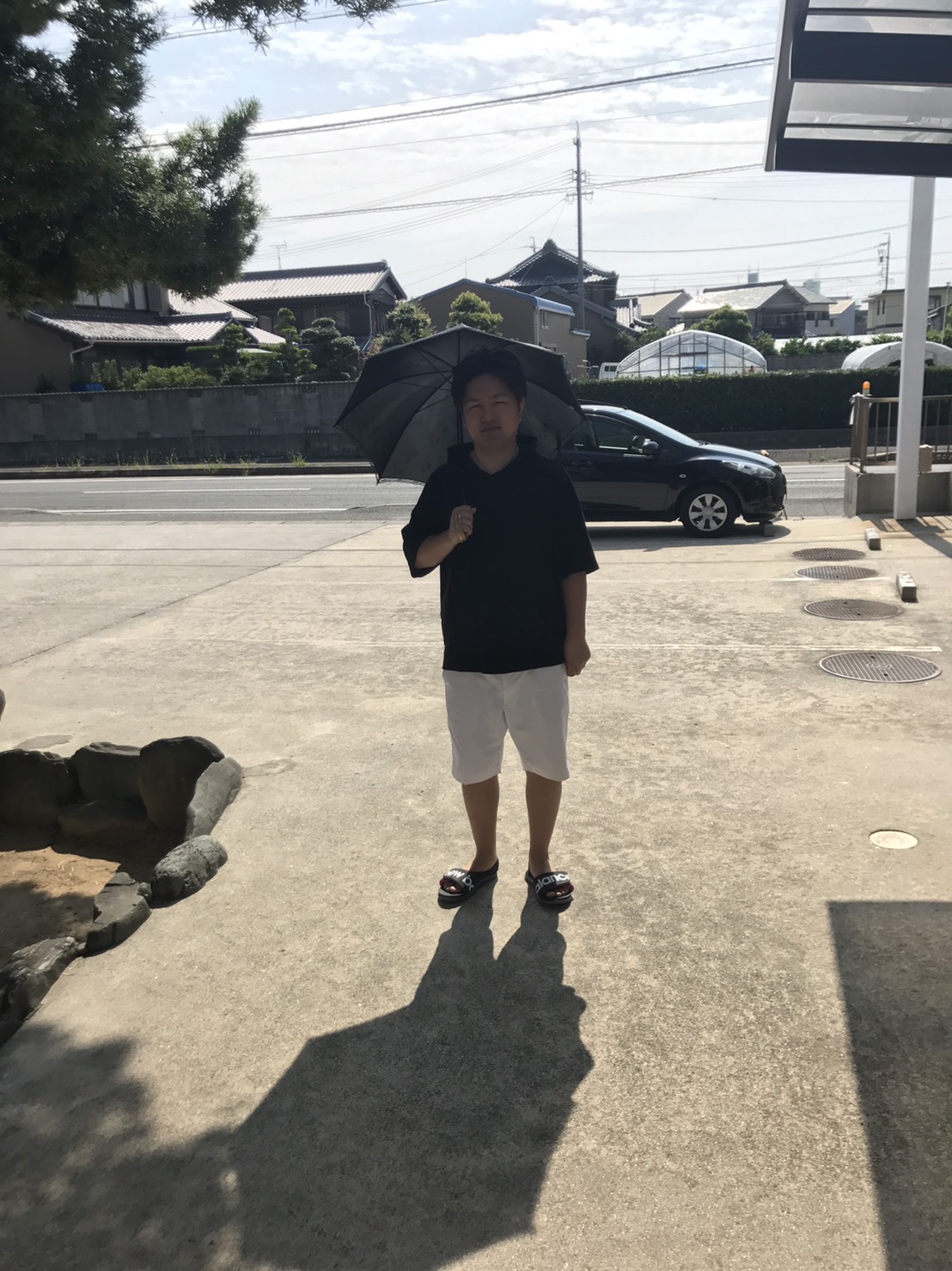 紫外線が強いので日傘をさしてあいさつしてしまいました