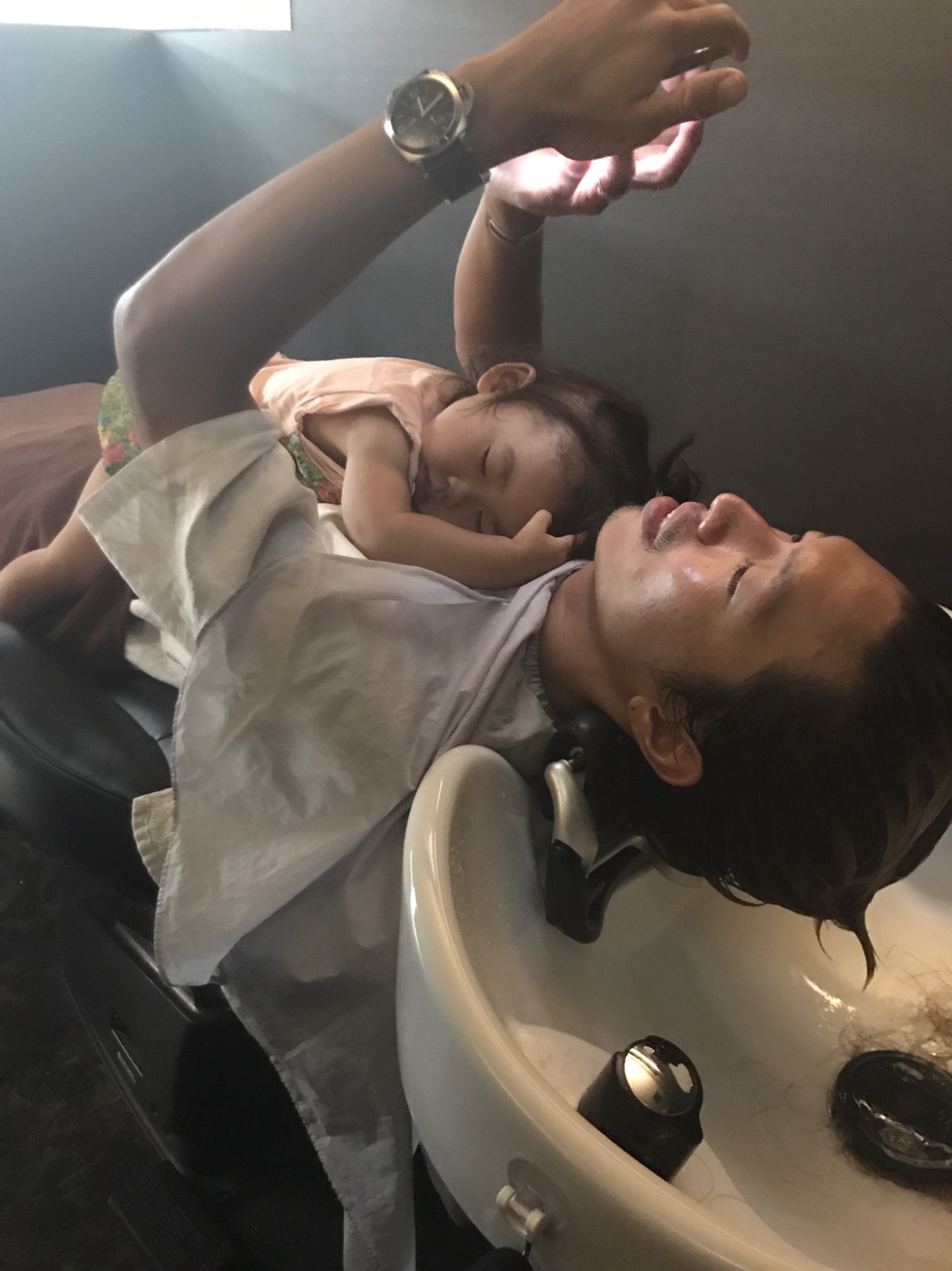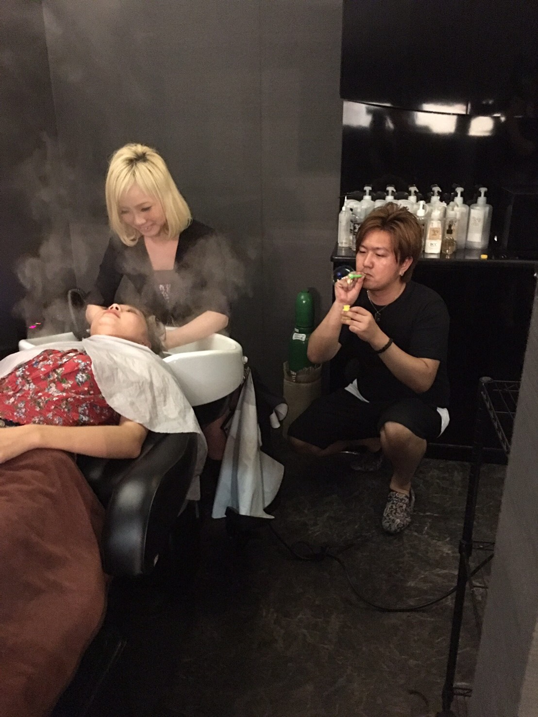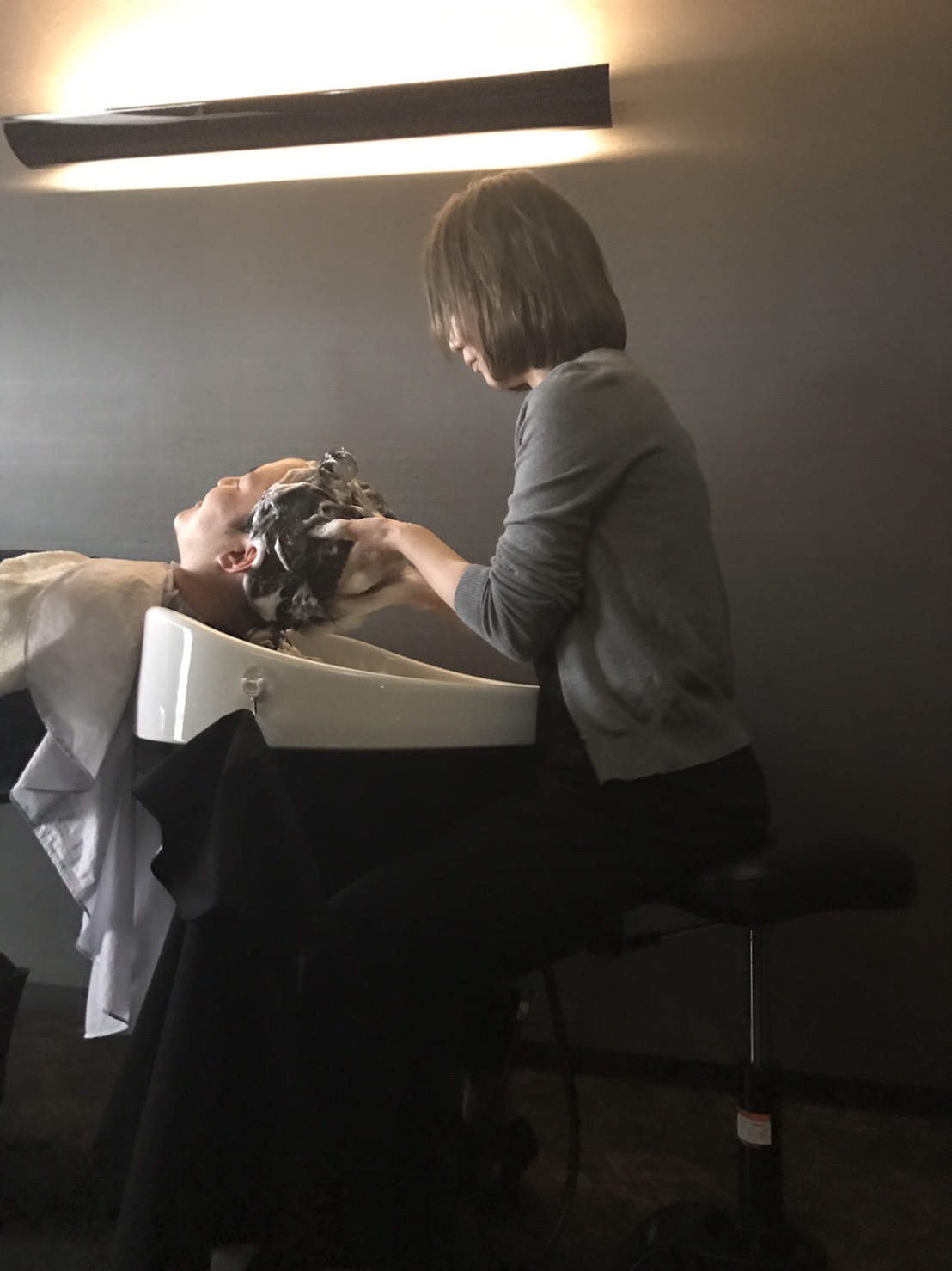 アシュリ独自のヘッドスパの方法をしています