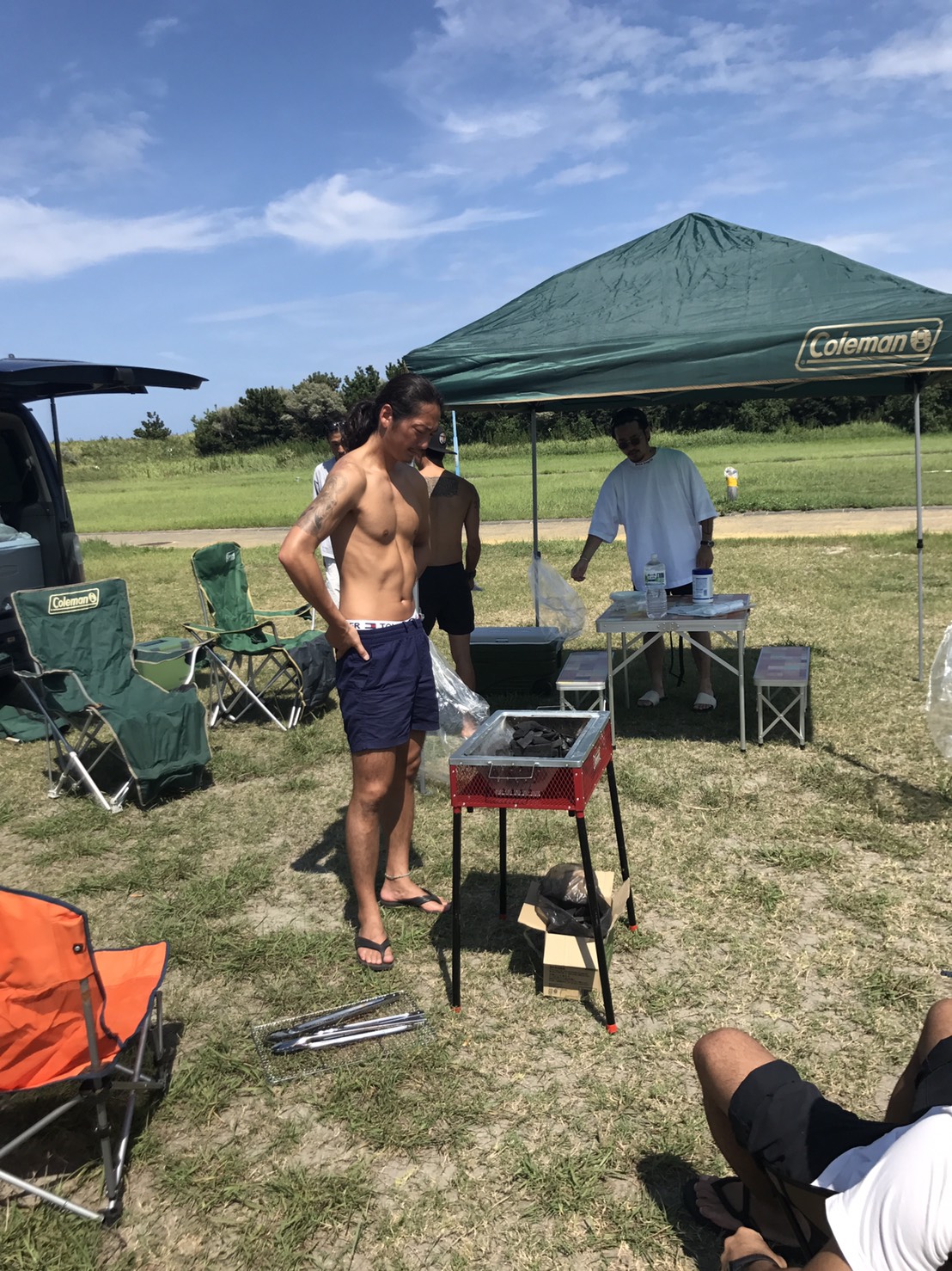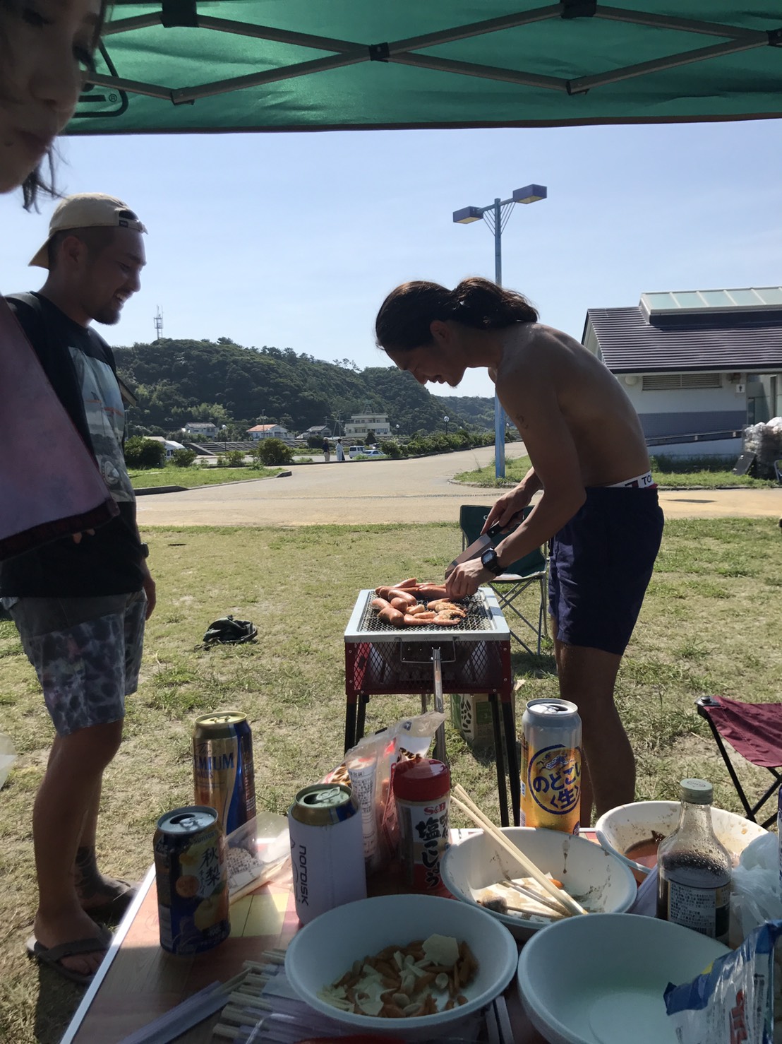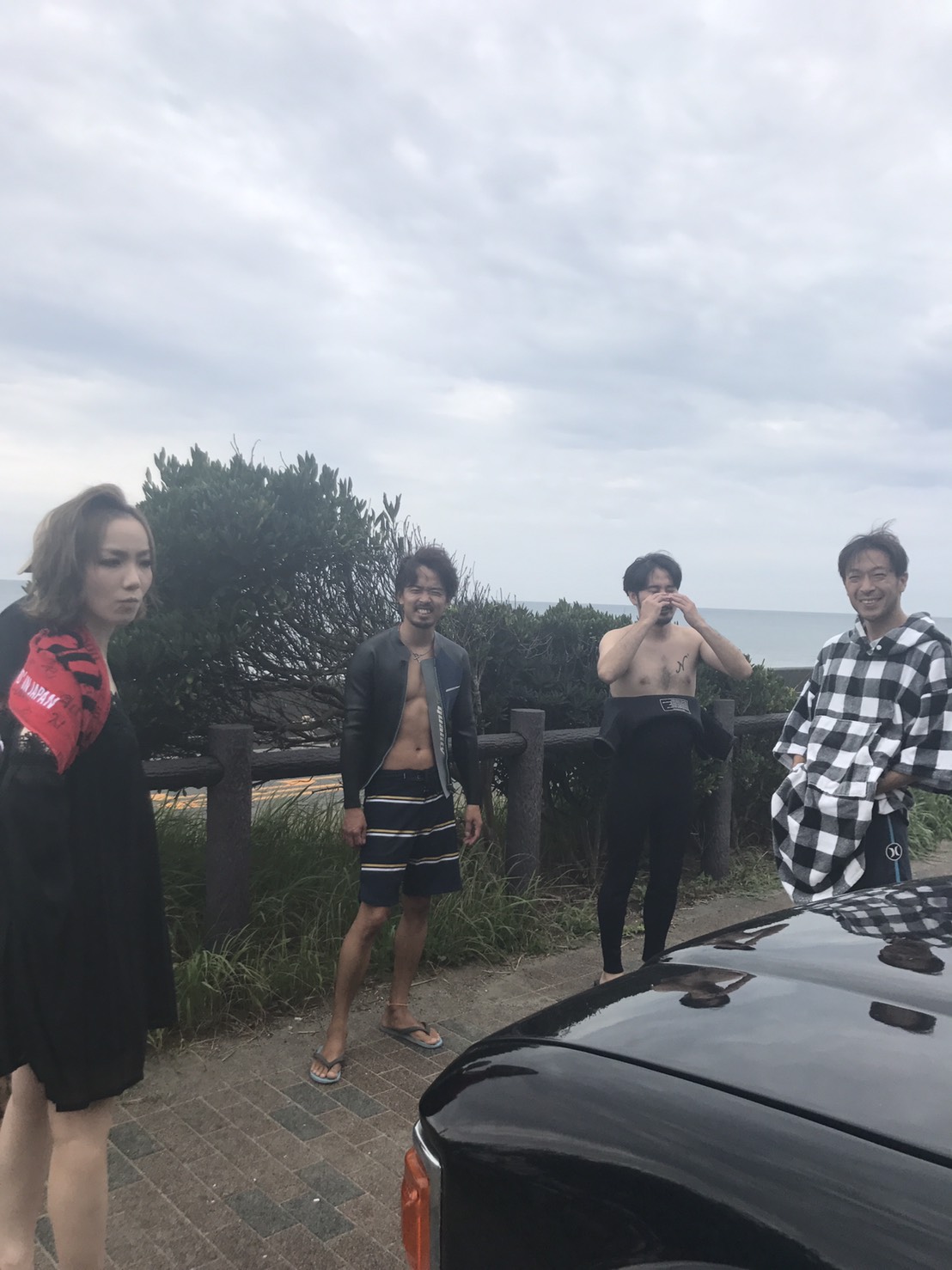 このメンバーでサーフィンやってBBQ