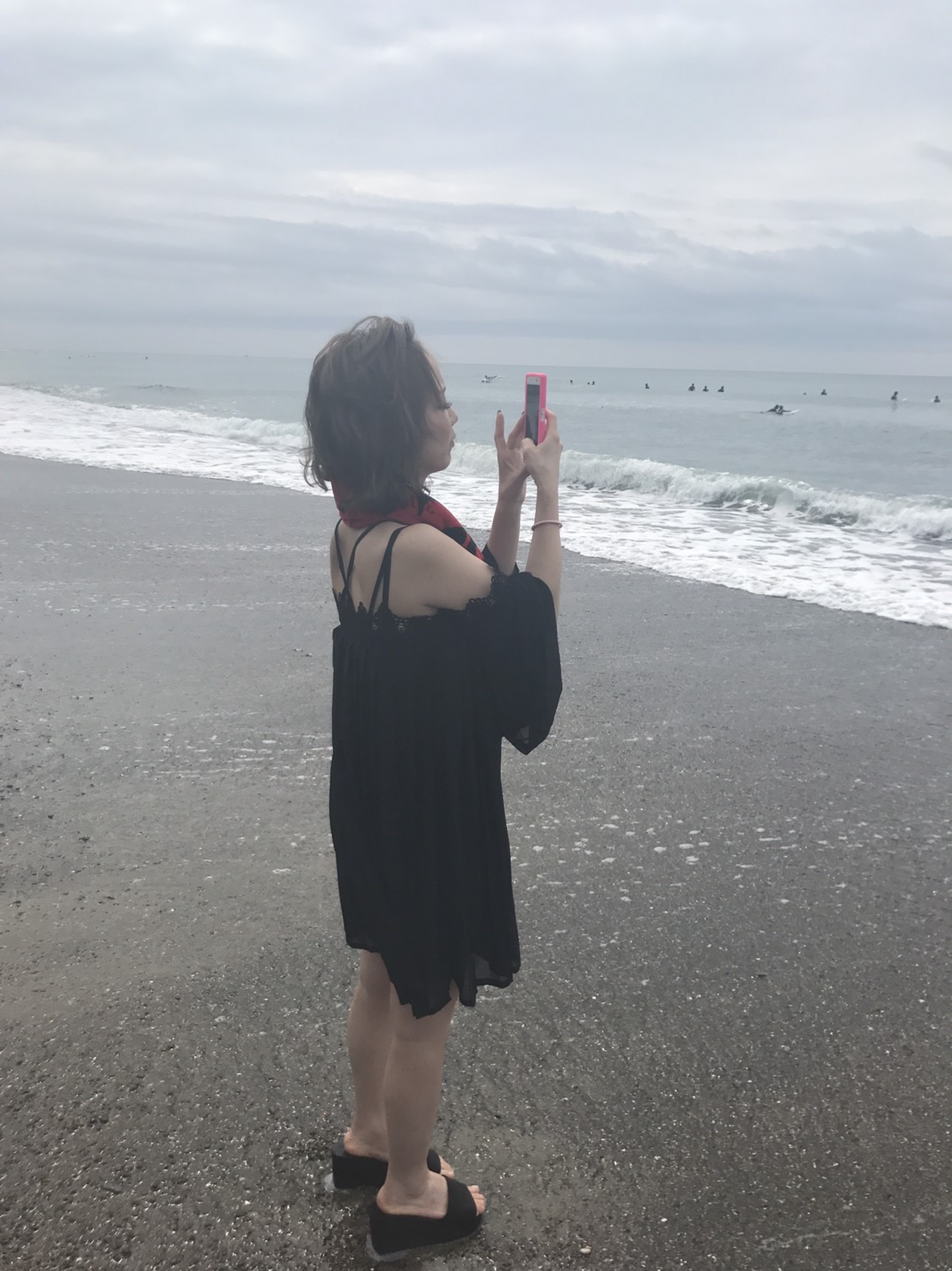 波を見る姿も絵になる