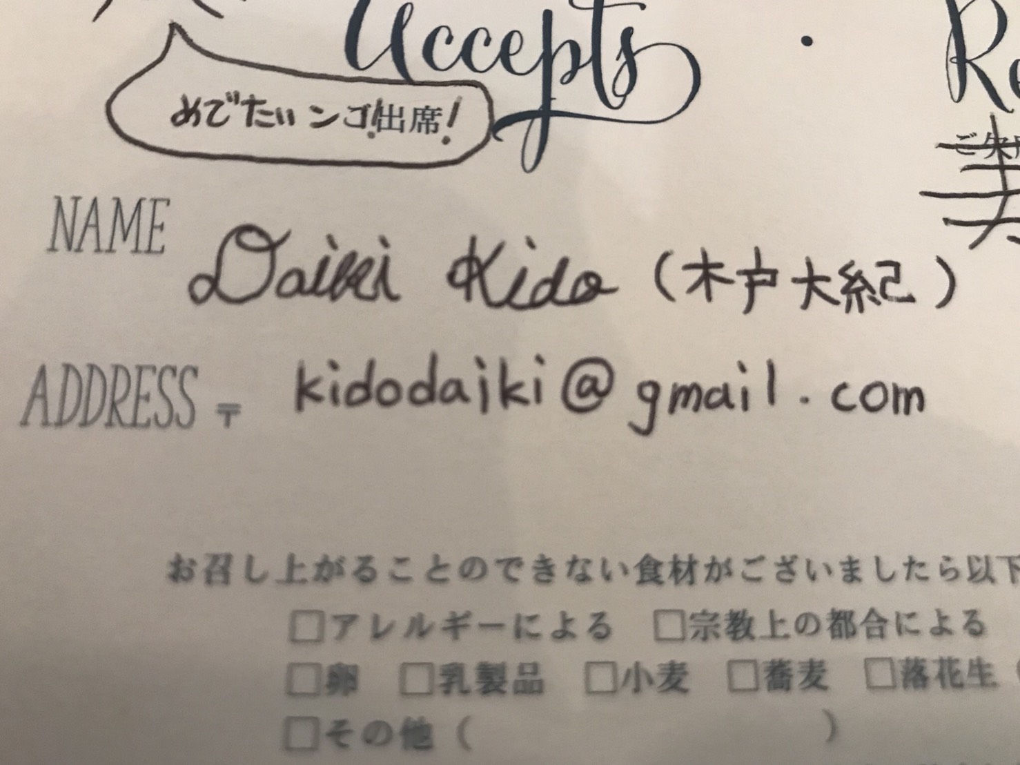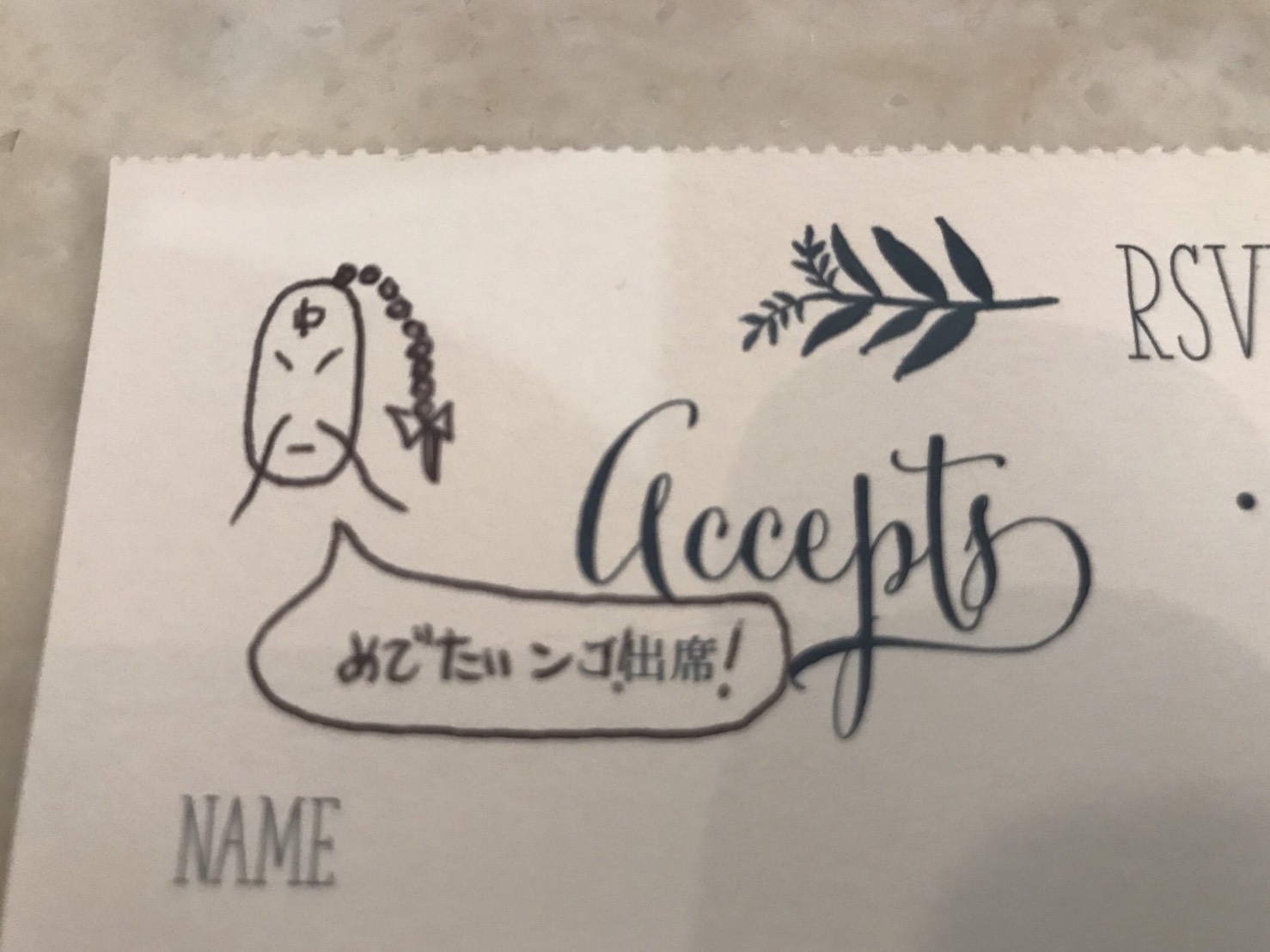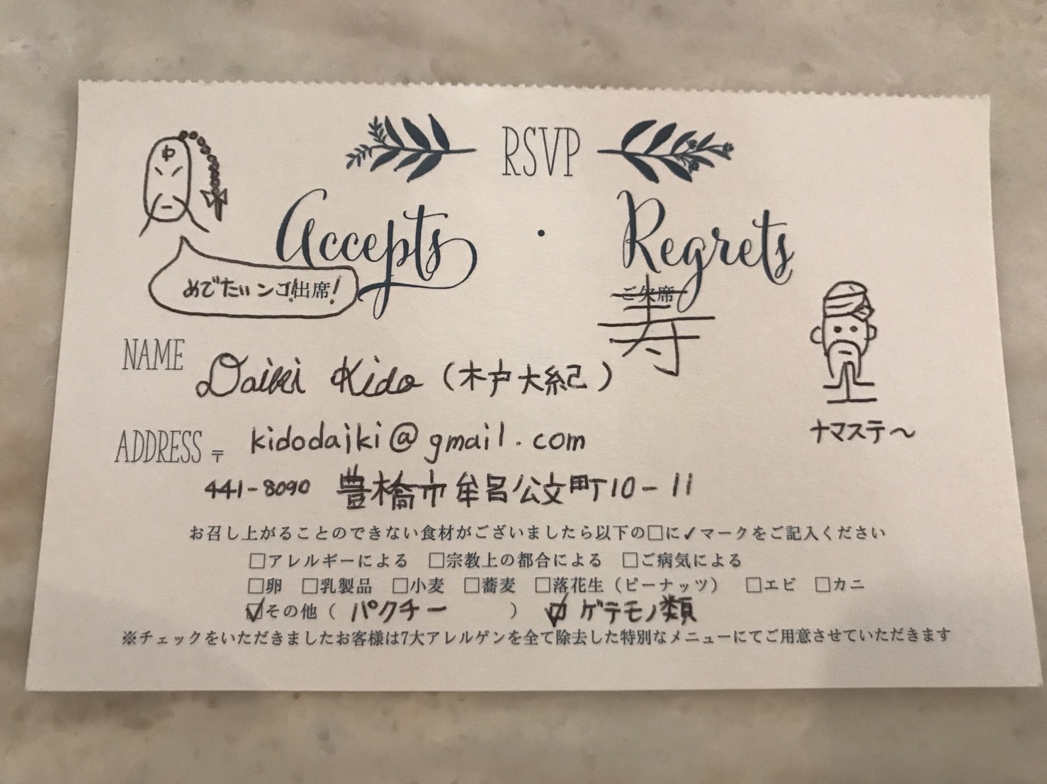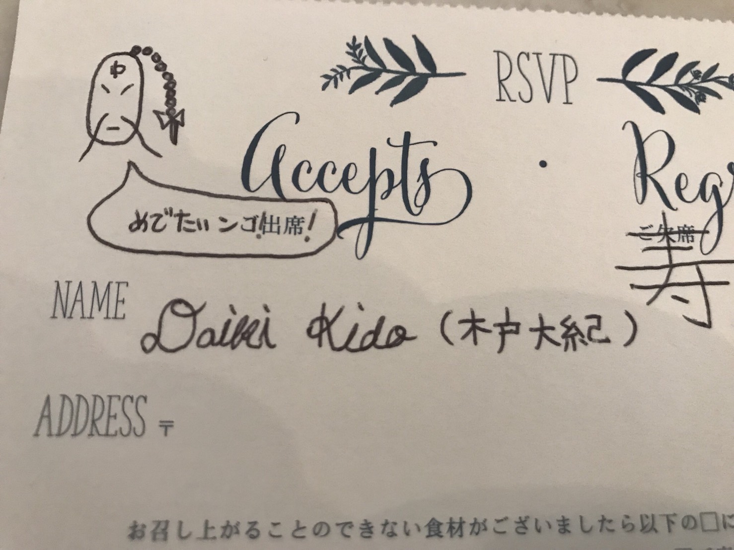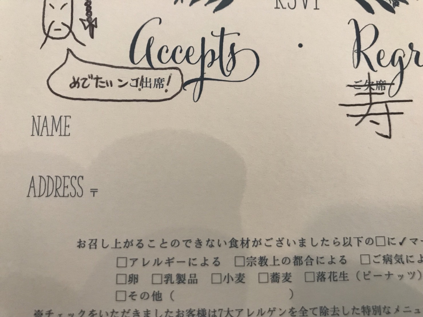 これで返信のハガキは完成である