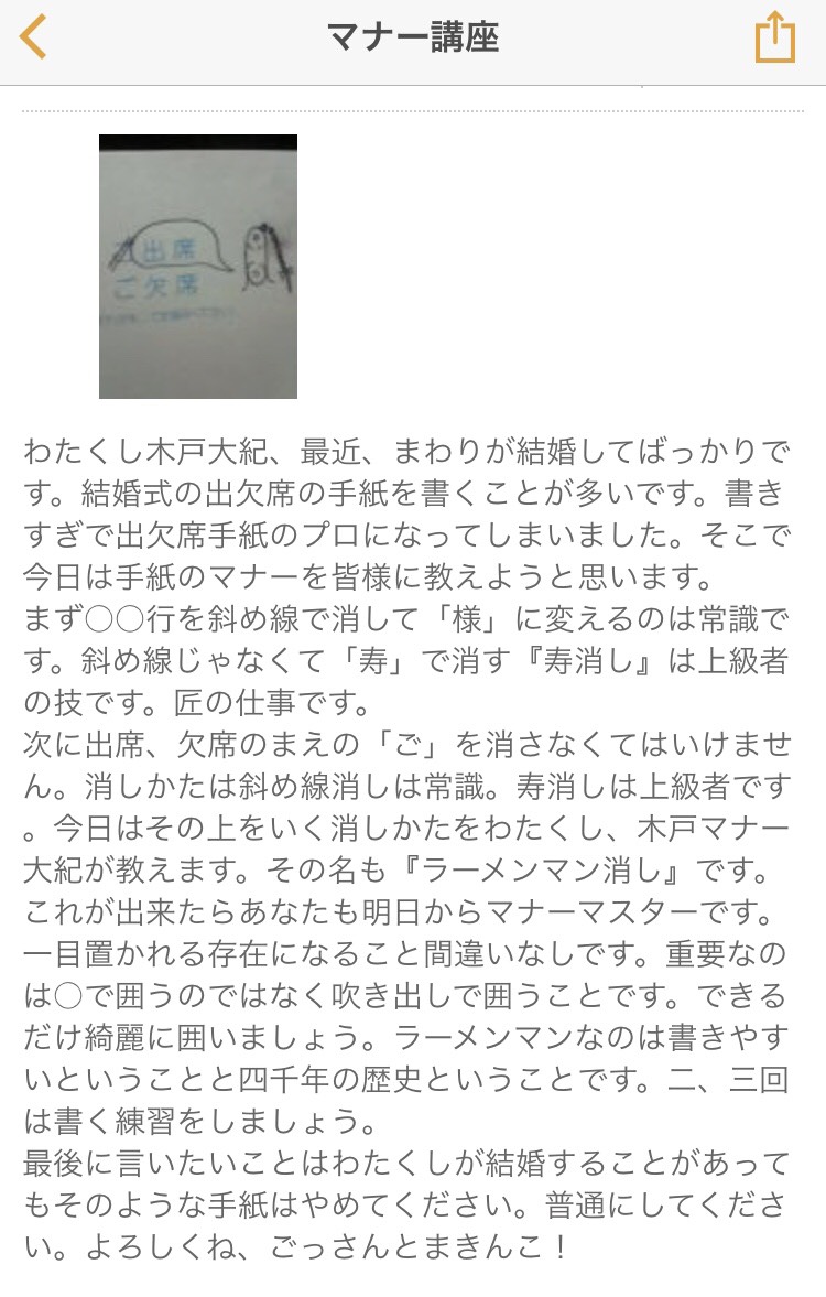 でもこのように横線で消してしまった場合、大人のマナーとしてはいかがなものであろうか??