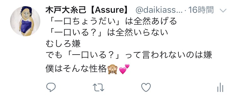 しかし「一口いる?」って聞かれないのは嫌です