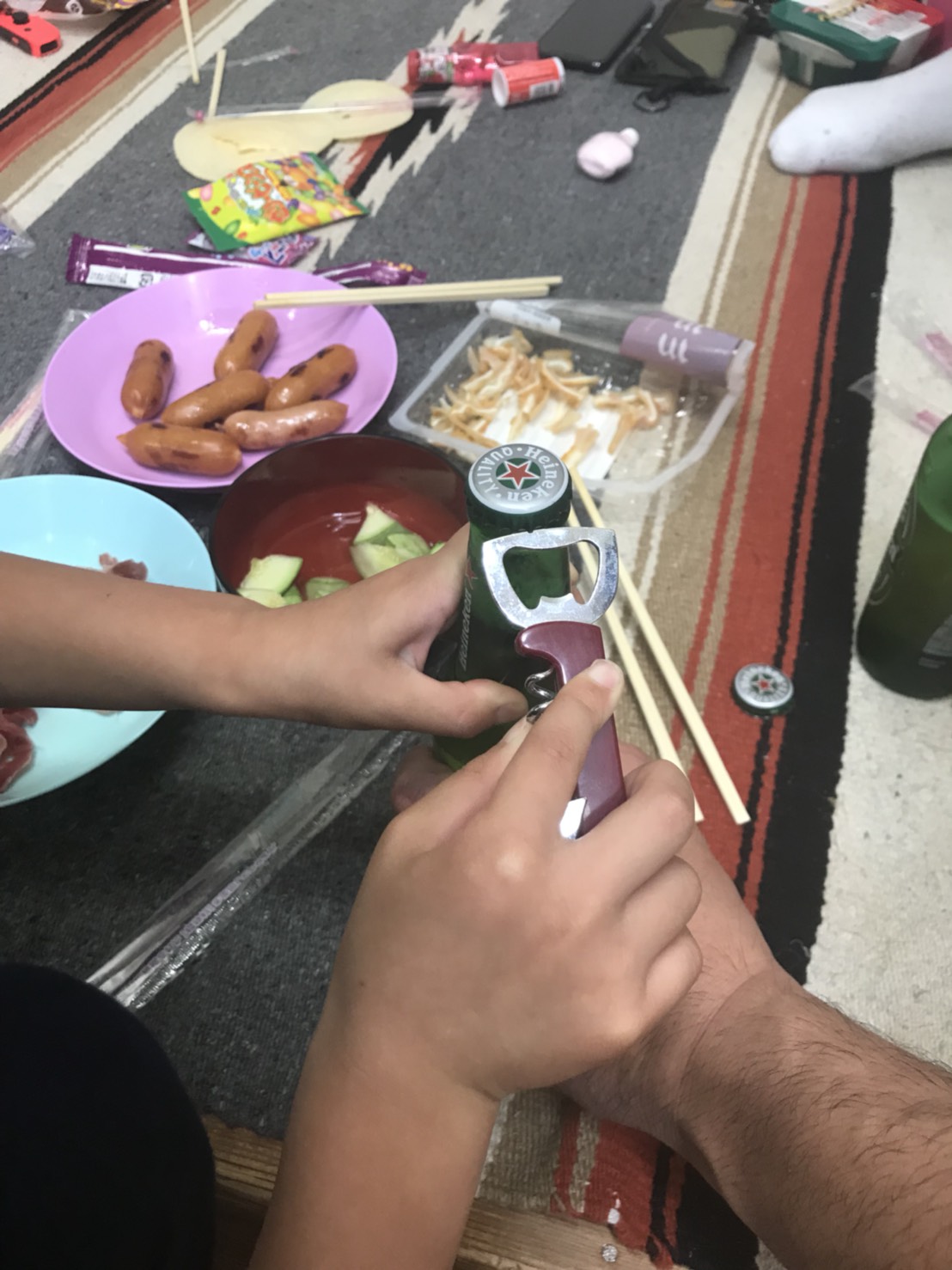 そしてななとはビンの蓋のあけ方を学んだり