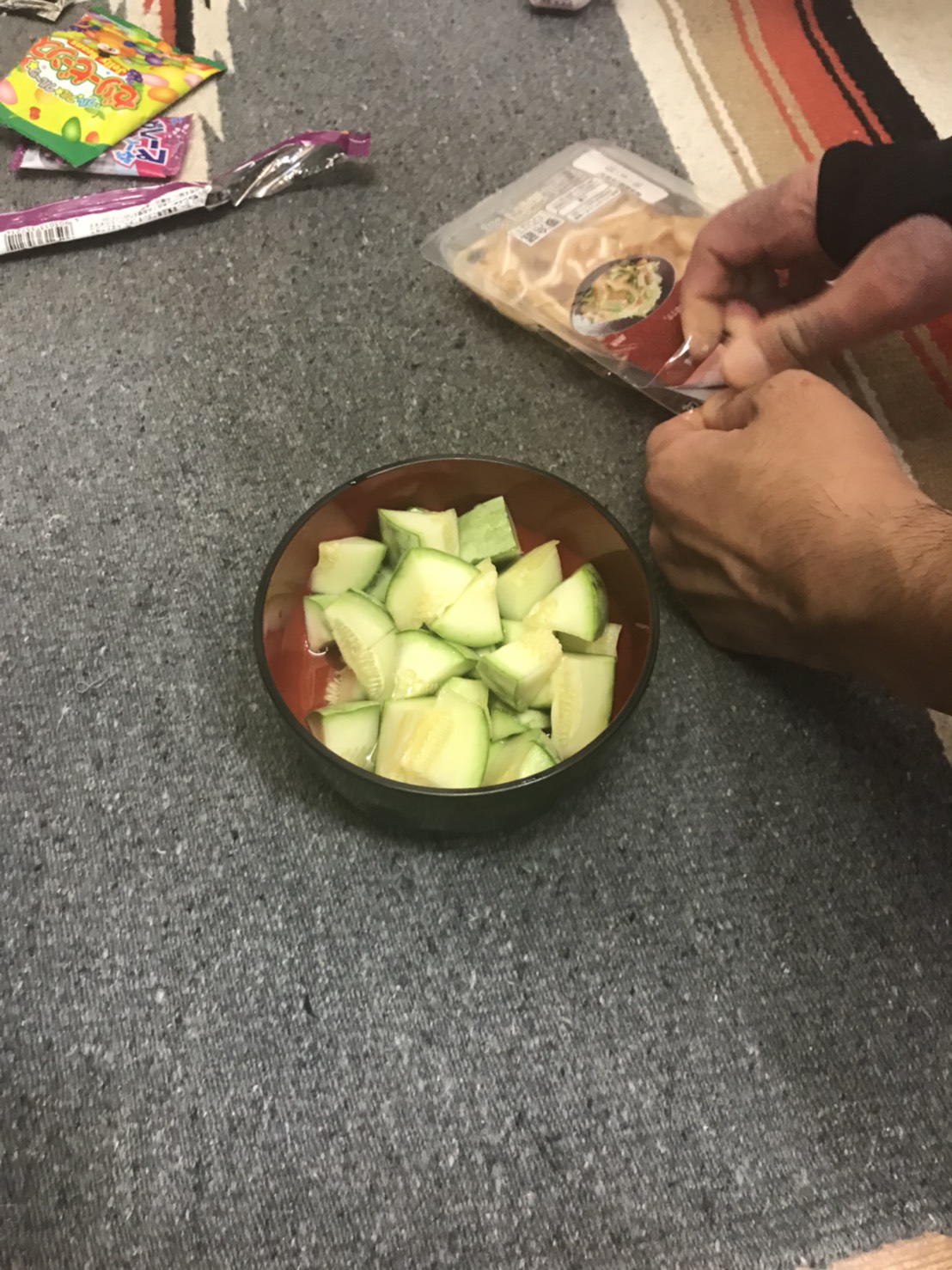 やりながらお菓子の蓋があけれない感じでいました