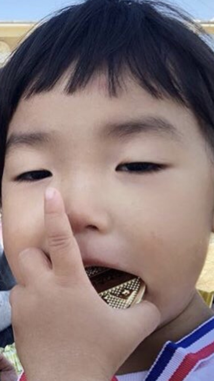 友達の子供が運動会で金メダルを獲ったみたいなんですが金メダル食べちゃってる
