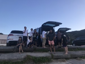 サーフィンをやりたいメンバーが多くて朝の5時ぐらいに集合