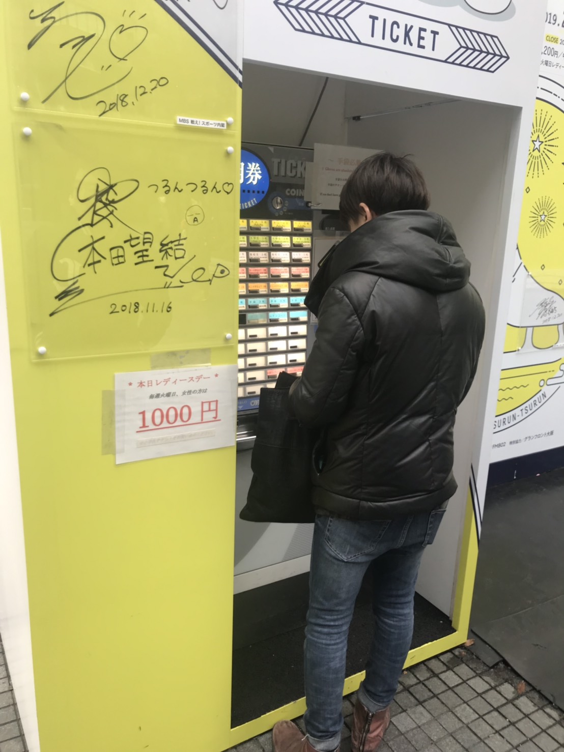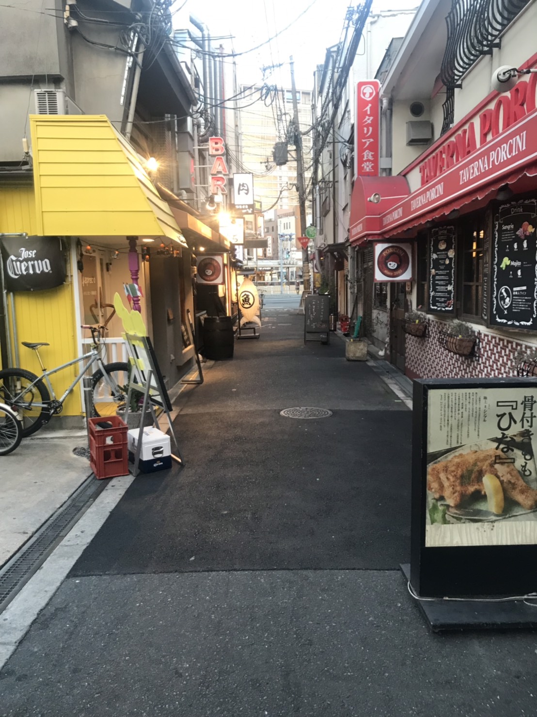 「梅田の黄色い自転車の前で」