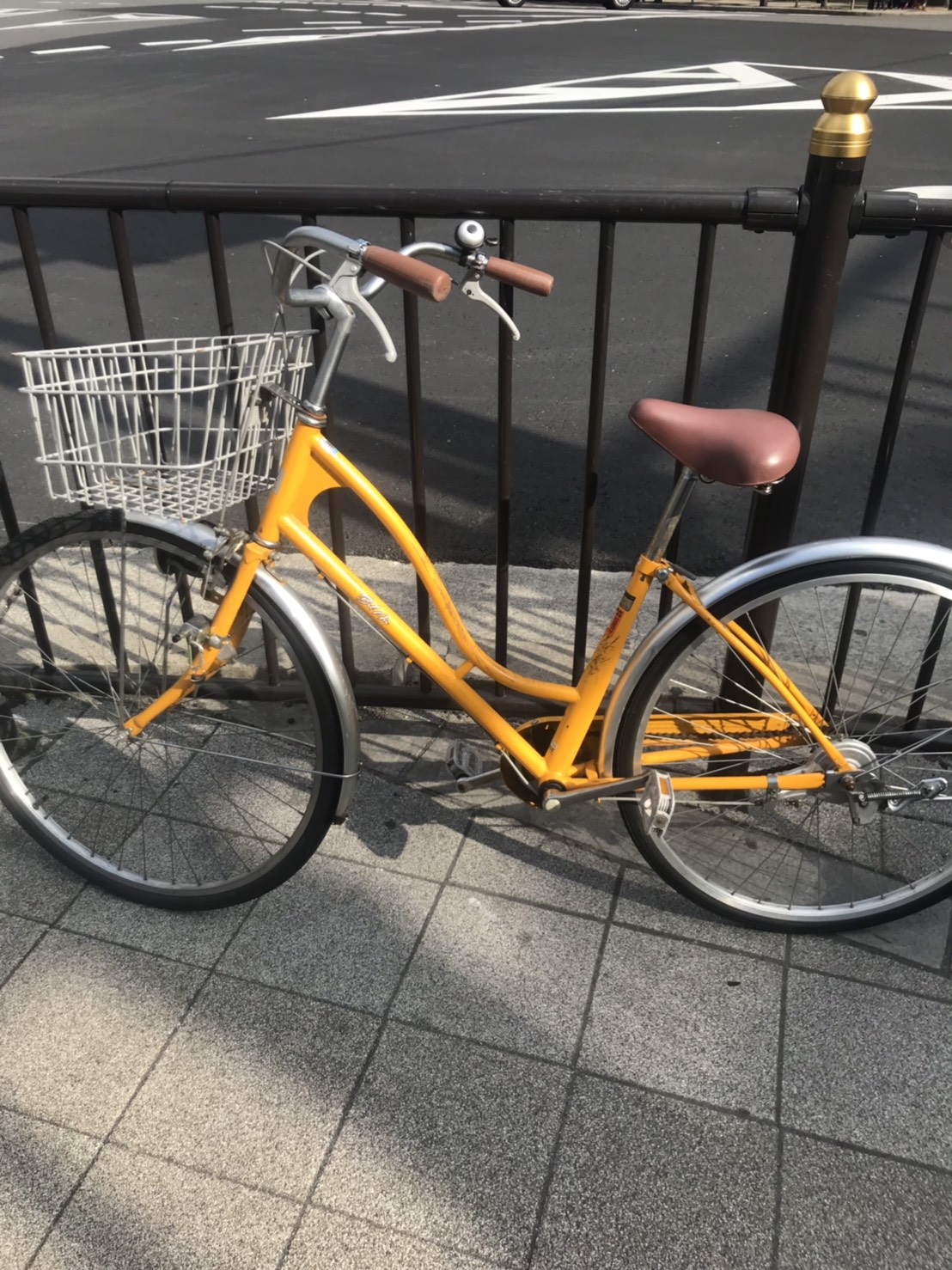 「ヨドバシの前の黄色い自転車の前で」