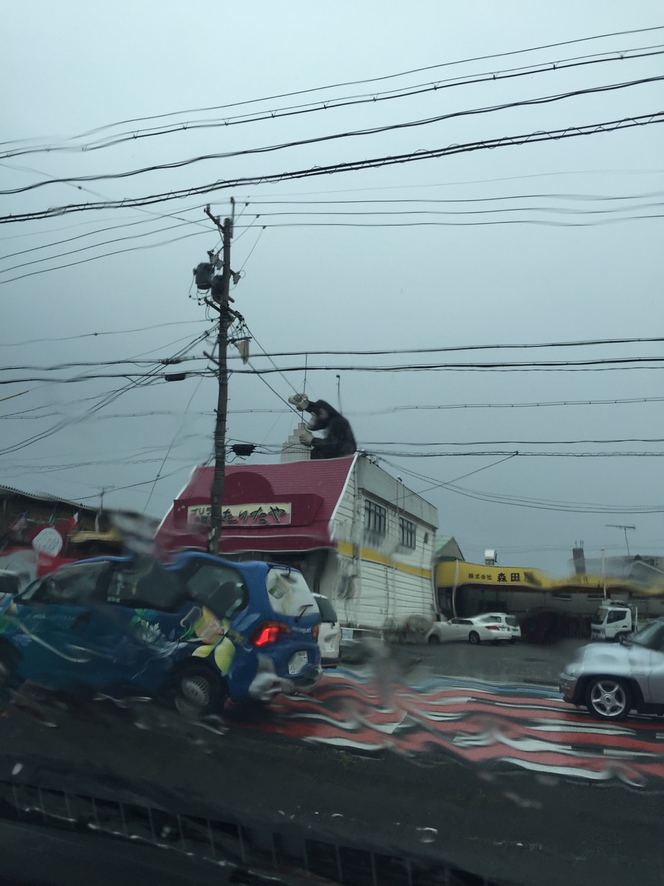 ゴリラも濡れています