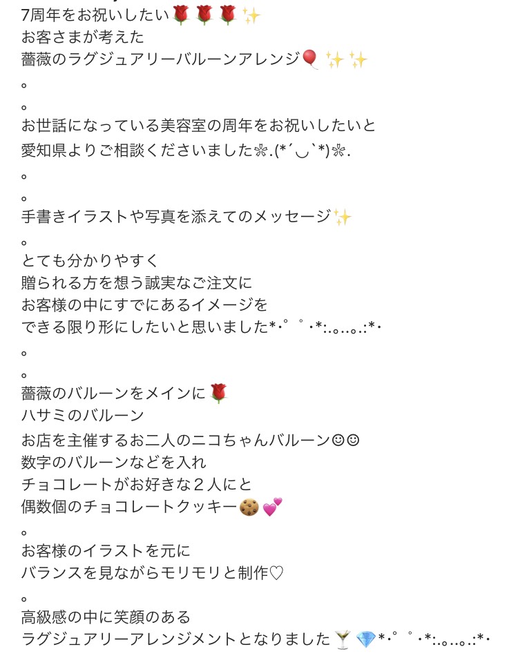 略してアヘリが周年記念でお客様からいただいたプレゼントのインスタの画像です