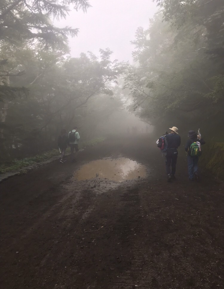 普通は1合目のでかい駐車場に車をとめてシャトルで5合目にむかう
