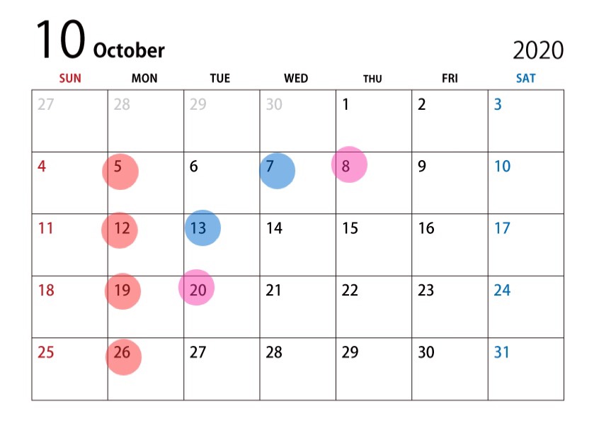 赤丸がお店の定休日
