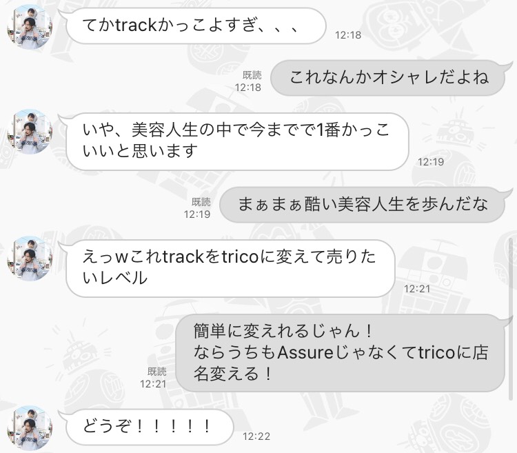 自分のお店の名前をtricoからtrackに変えたいと言い出したのです