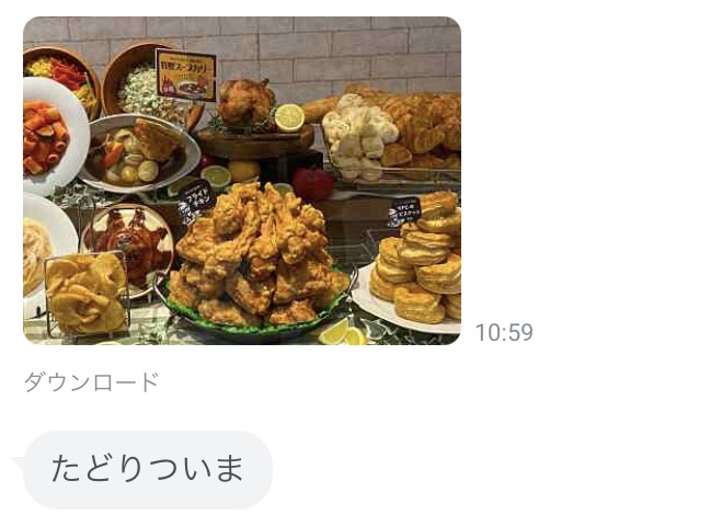 ケンタッキーにテンションがあがって「たどりついたよ、いま」が「たどりついま」に略されている