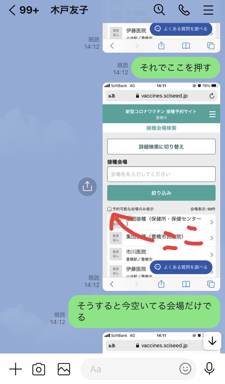 こうすると今、どこの会場で予約できるってわかるよ!みたいな感じだ