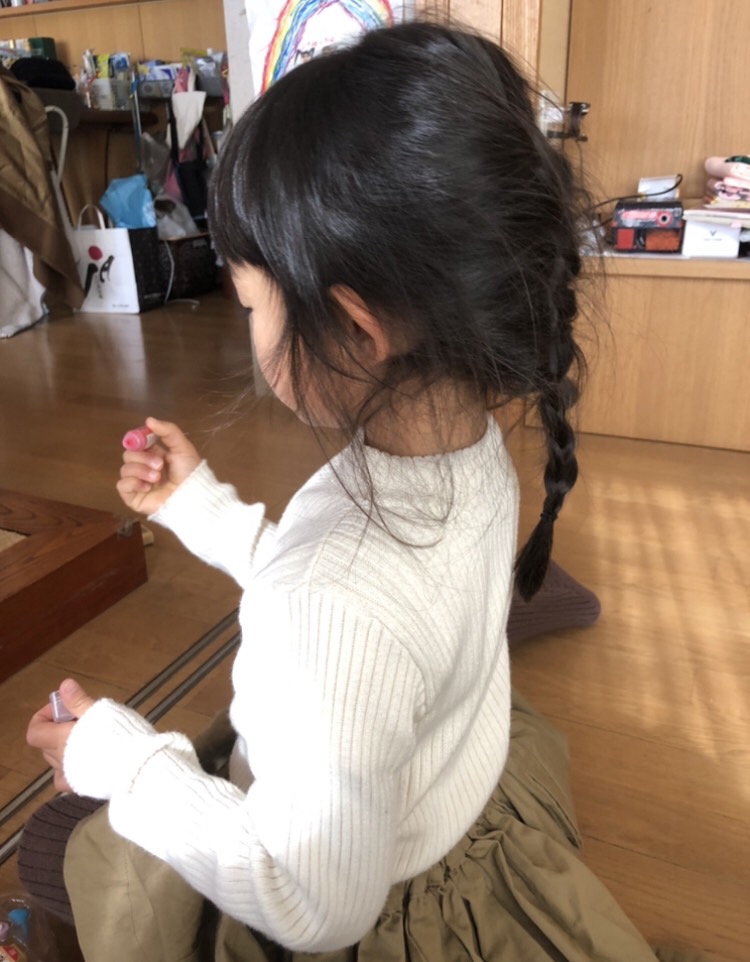家に入ってまずサンタにもらったというメイク道具でメイクされそうになりました
