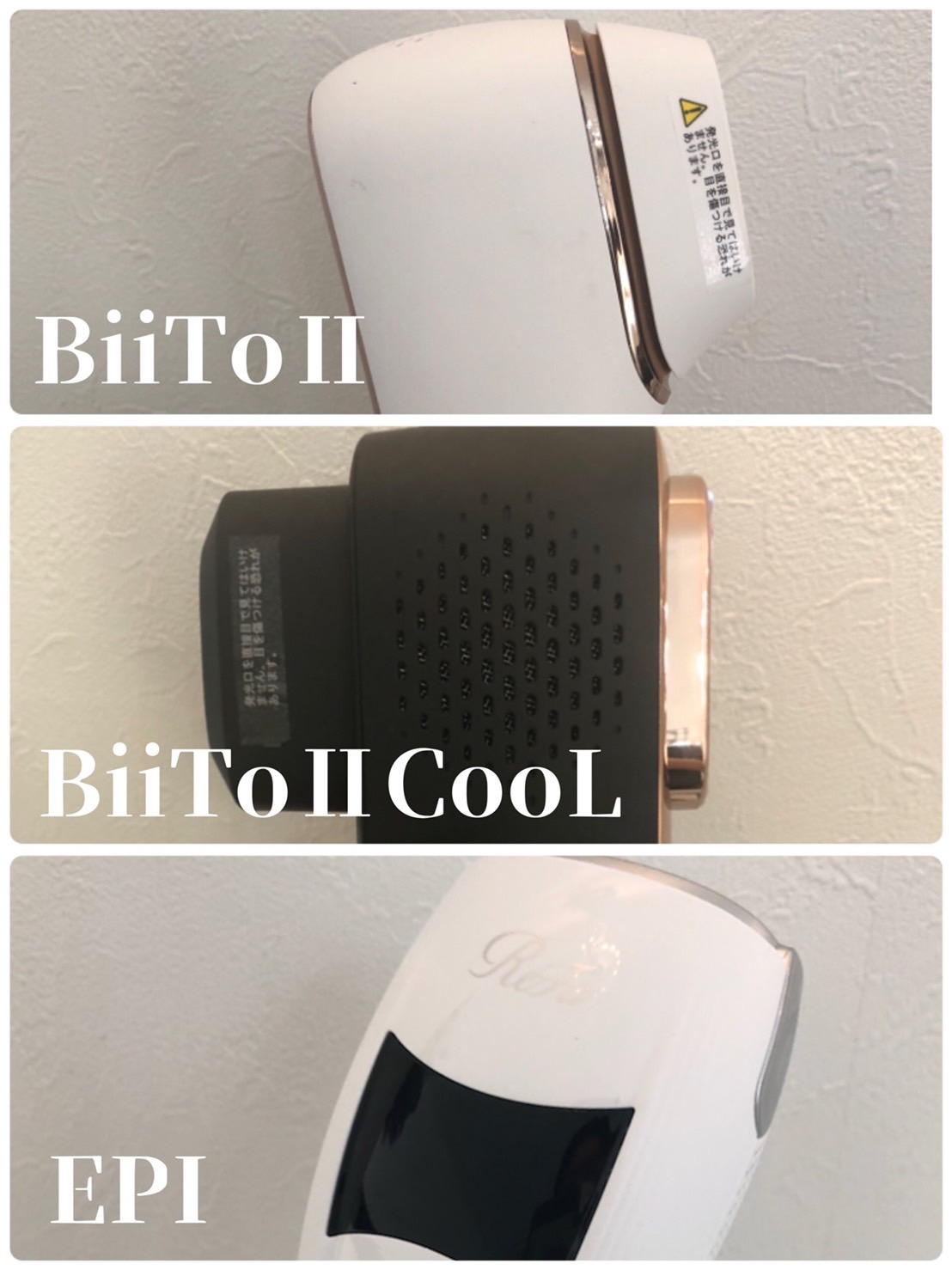 パワーが強い順にReFa BEAUTECH EPI、BiiToⅡCooL、BiiToⅡです