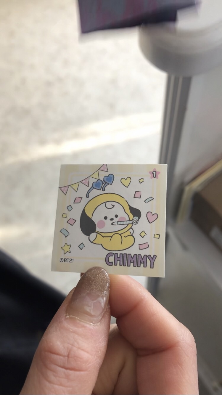 ジミンのシールを魚にも自慢していた